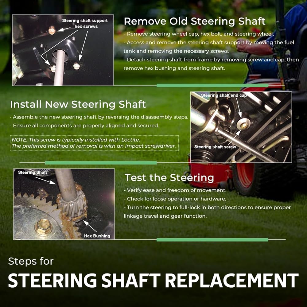 Special Note - Many steering shaft failures are caused by a worn bushing, and teeth breakage on the shaft engagement component can cause loose or slipping steering. Therefore, regular inspection and replacement are necessary. Since this is a wear-prone part, if you encounter any issues with our product during use, please contact us at any time.