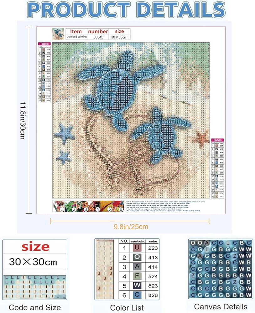 clakinla السلاحف البحرية الماس الفن مجموعات الرسم للبالغين، 5d السلاحف الماس الفن مجموعات الرسم للمبتدئين، السلاحف جوهرة اللوحة عدة الماس النقاط اللوحة لديكور جدار المنزل 12x12 بوصة