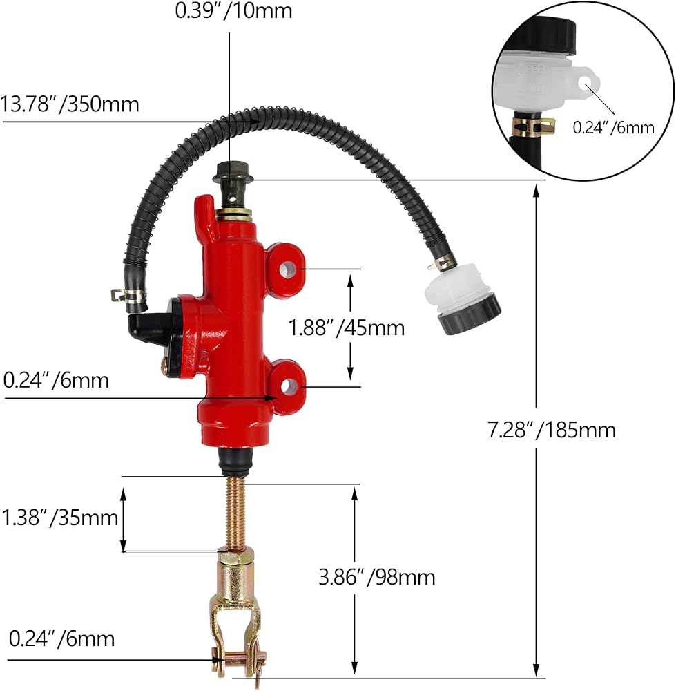 أسطوانة الفرامل الخلفية الرئيسية لرابتور 660 660R 70cc 90cc 110cc 125cc 98cc 196cc 212cc ATC-250R GSXR 600 Taotao Yard Card Go Karts، أسطوانة الفرامل الرئيسية مع خزان (أحمر)