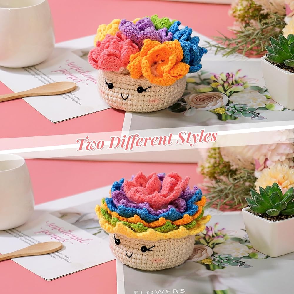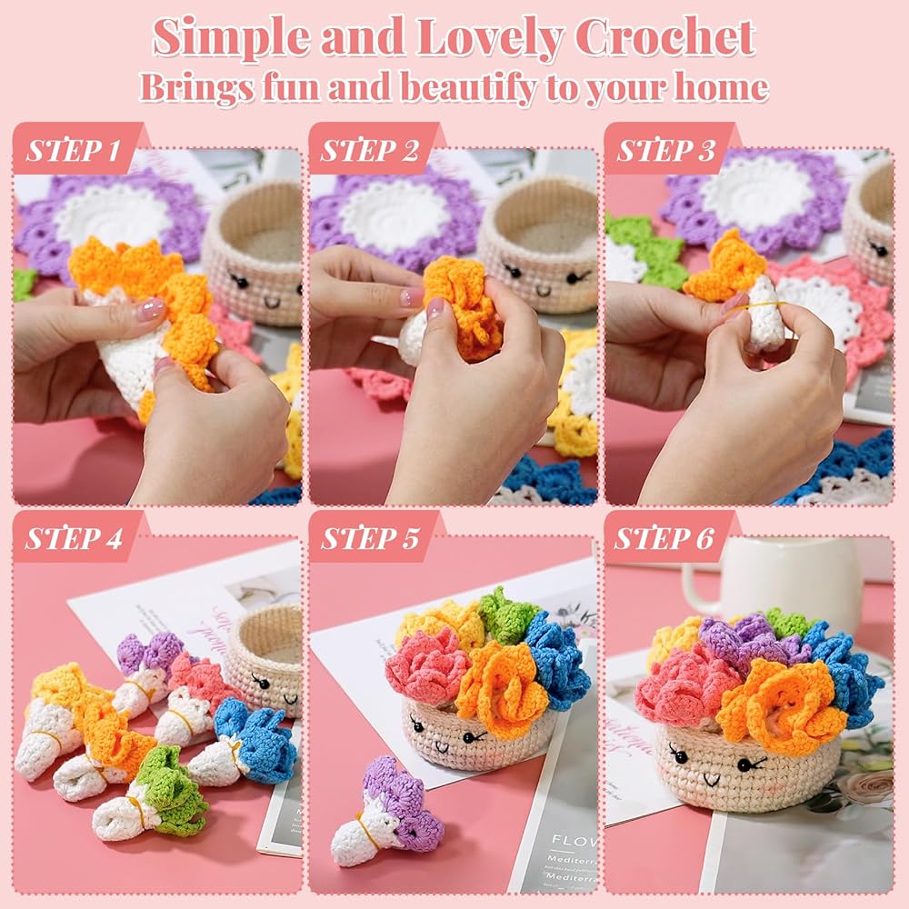 مجموعة كروشيه لوموهو للمبتدئين، طقم قواعد كروشيه مكون من 6 قطع، مجموعة كروشيه نباتية بوعاء زهور مع خطاف كروشيه، غزل ملون، علامة غرز، تعليمات، أدوات مواد يدوية لمحبي الحرف اليدوية (ملونة)