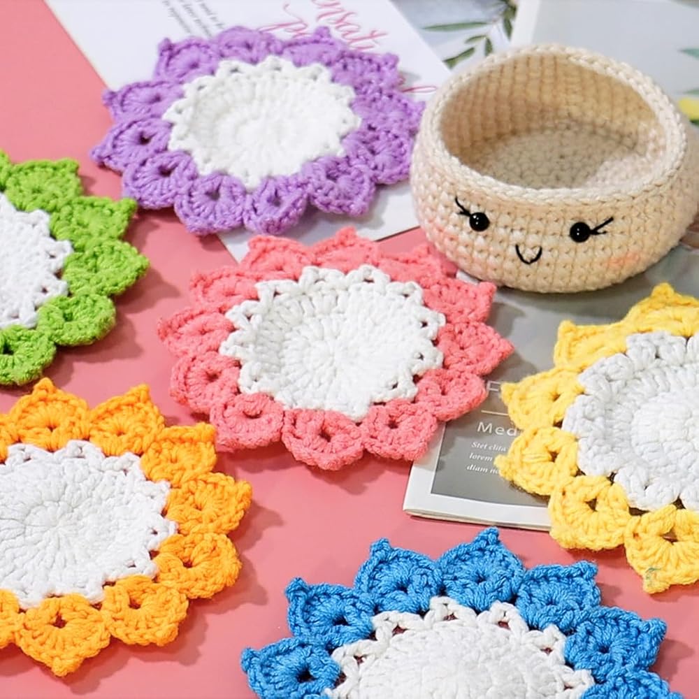 • 【ديكور منزلي فريد من نوعه】بعد الانتهاء من الكروشيه، يمكن طي مجموعة الكروشيه على شكل نبات بوعاء لتزيين منزلك، مثل المطبخ أو غرفة المعيشة، ويمكنك أيضًا تزيينها في سيارتك، كعمل فني. الديكور، إلخ. علاوة على ذلك، يمكن أن يكون هذا الكروشيه أيضًا بمثابة قواعد أكواب رائعة لحماية طاولتك.