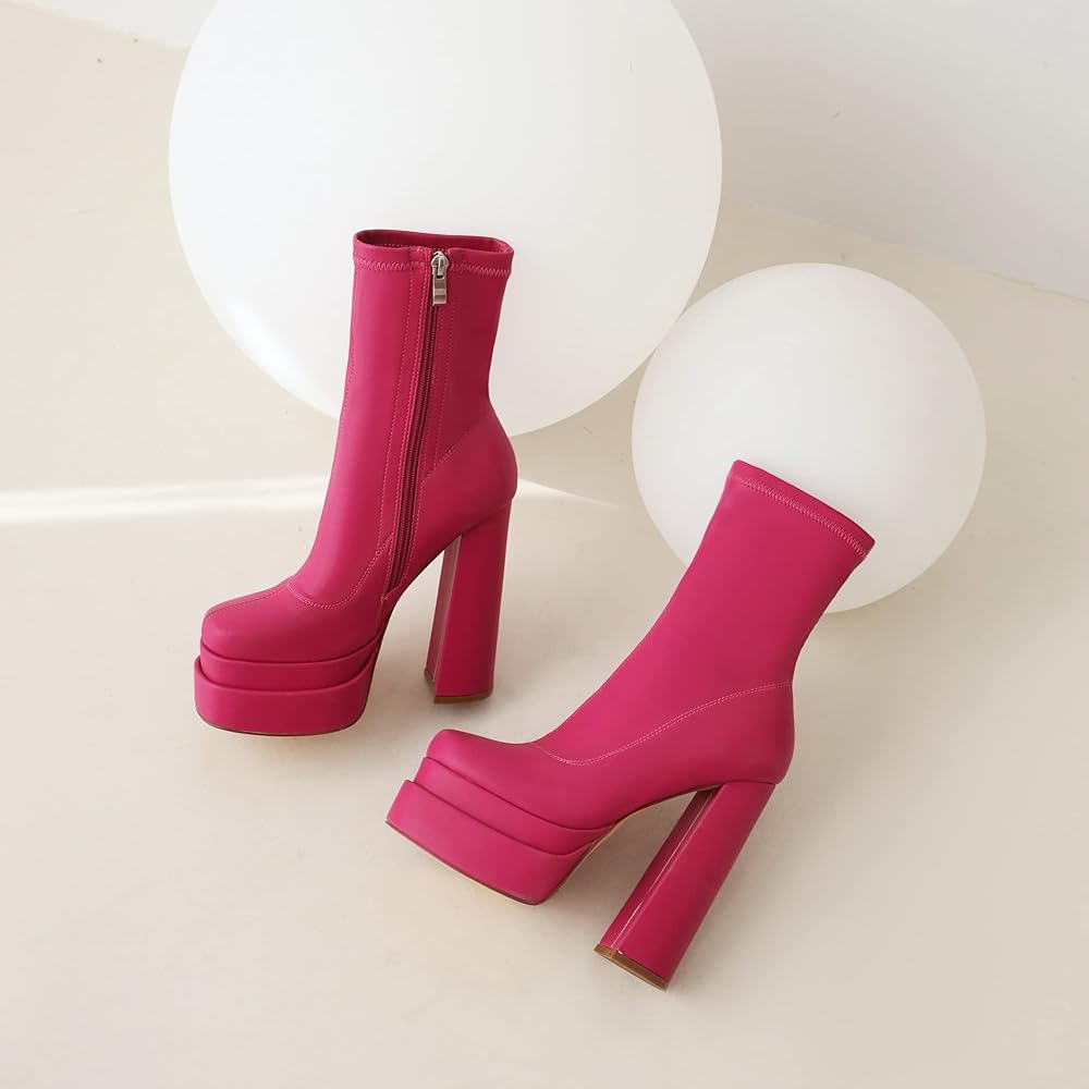 Fashionable chunk high heeled platform ankle boots provide you with more possibilities for matching clothes. They are fashionable enough to match with the wardrobe of long skirts,jeans, coats, and sweaters.