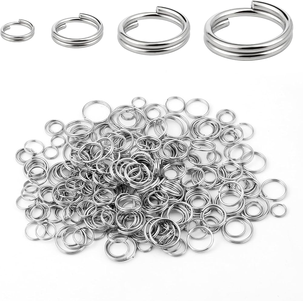 400 قطعة حلقات مقسمة من الفولاذ المقاوم للصدأ - حلقة سلسلة مفاتيح صغيرة شديدة التحمل، حلقات قفز مزدوجة لصنع المجوهرات، حلقة علامة الحيوانات الأليفة، حلقة سلسلة مفاتيح صغيرة للحرف اليدوية، مفاتيح السيارة - مختلطة 4 مقاسات (6 مم/8 مم/10 مم/12 مم)
