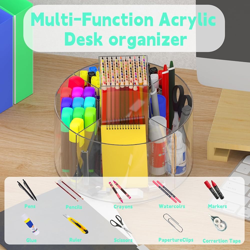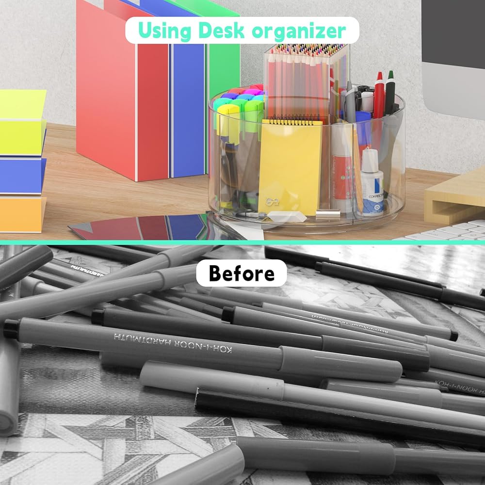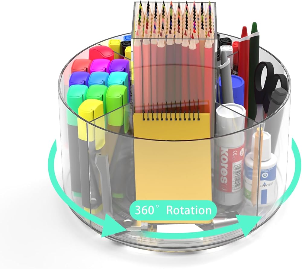 دوران 360 درجة: جميع العناصر في متناول اليد بدورة واحدة فقط. يمكن لمنظم القلم للمكتب أن يبقي كل شيء منظمًا وفي متناول يدك.