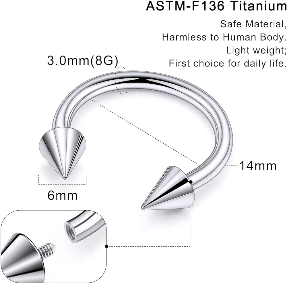 - 【الخامة: مصنوعة من التيتانيوم ASTM F136 ومعتمدة من SGS، مناسبة للثقوب الطازجة أو العلاجية. سطح مصقول عالي الجودة، مريح في الارتداء.