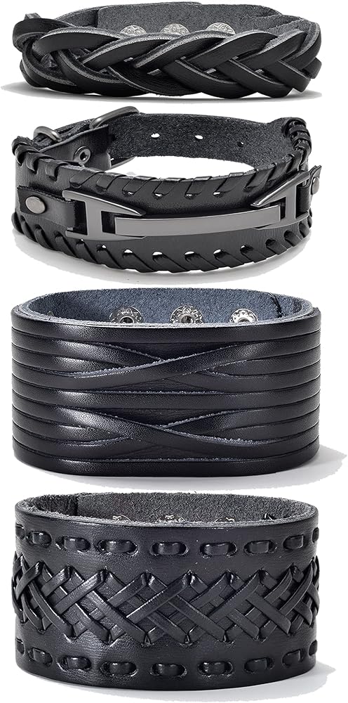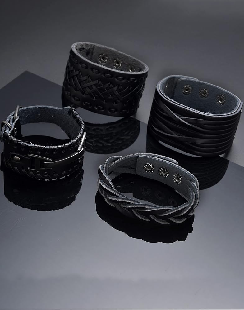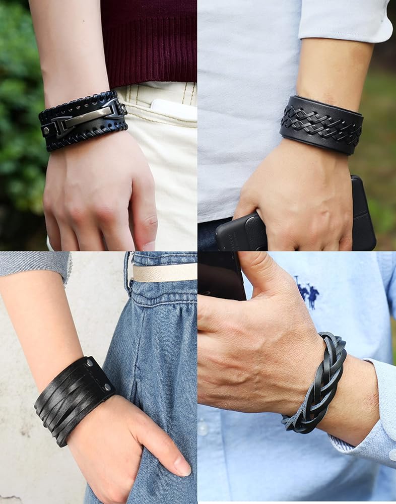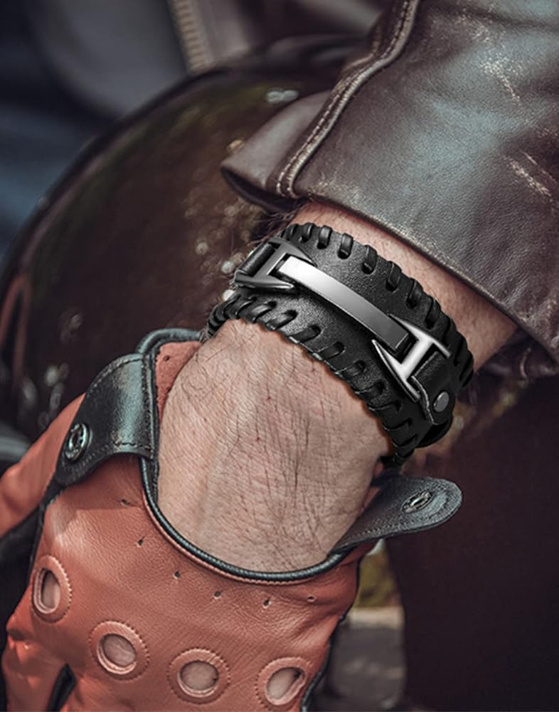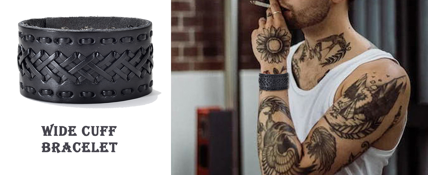 【مقاس قابل للتعديل】يمكن تعديل حجم السوار الجلدي وفقًا لاحتياجاتك، ويتم لفه حول الذراع وإغلاقه بسهولة، ومناسب لمعظم الأشخاص، ولن يجعلك تشعر بالضيق أو الارتخاء، ويجعلك رائعًا ووسيمًا.