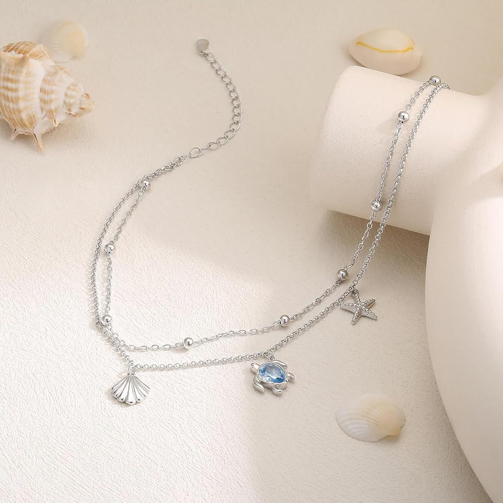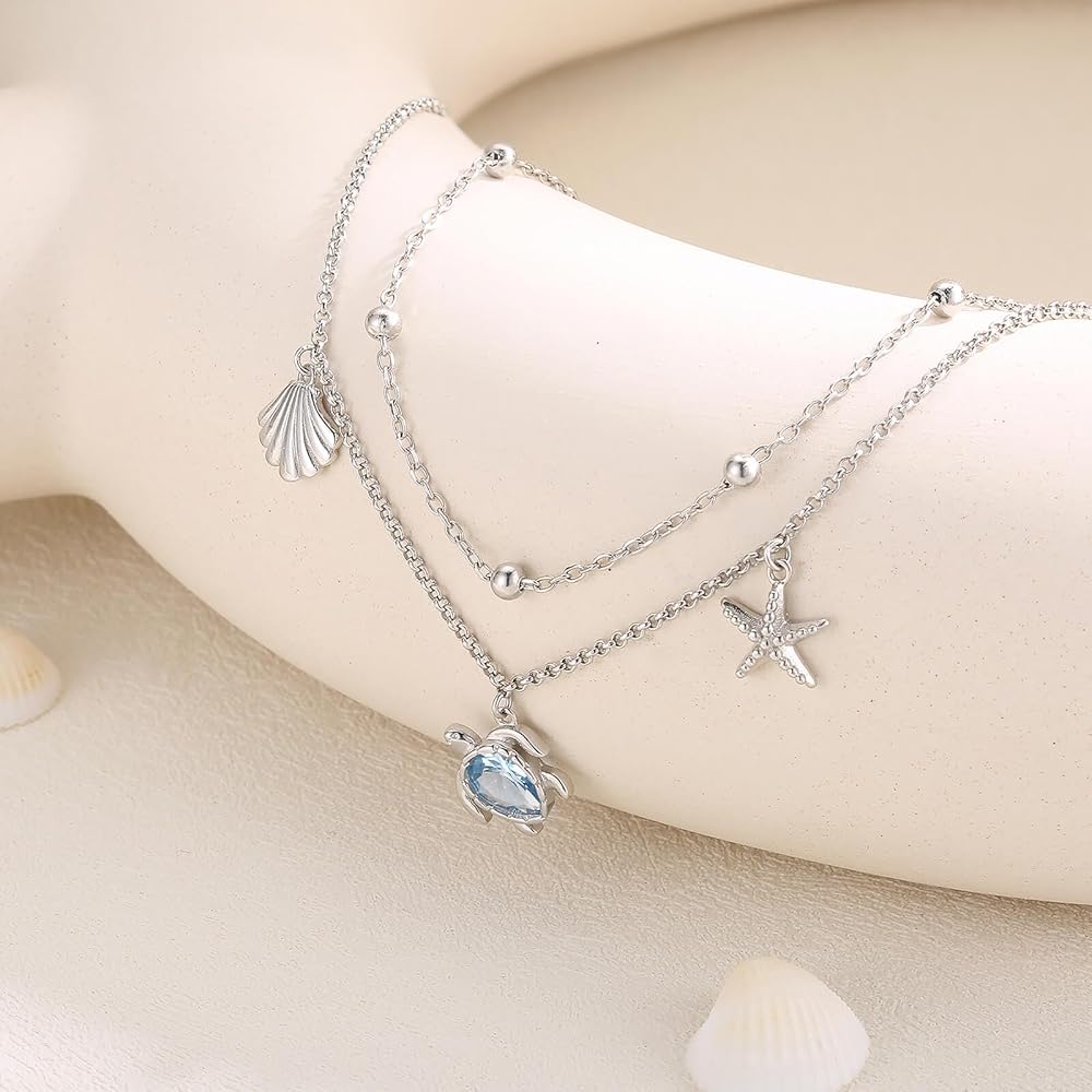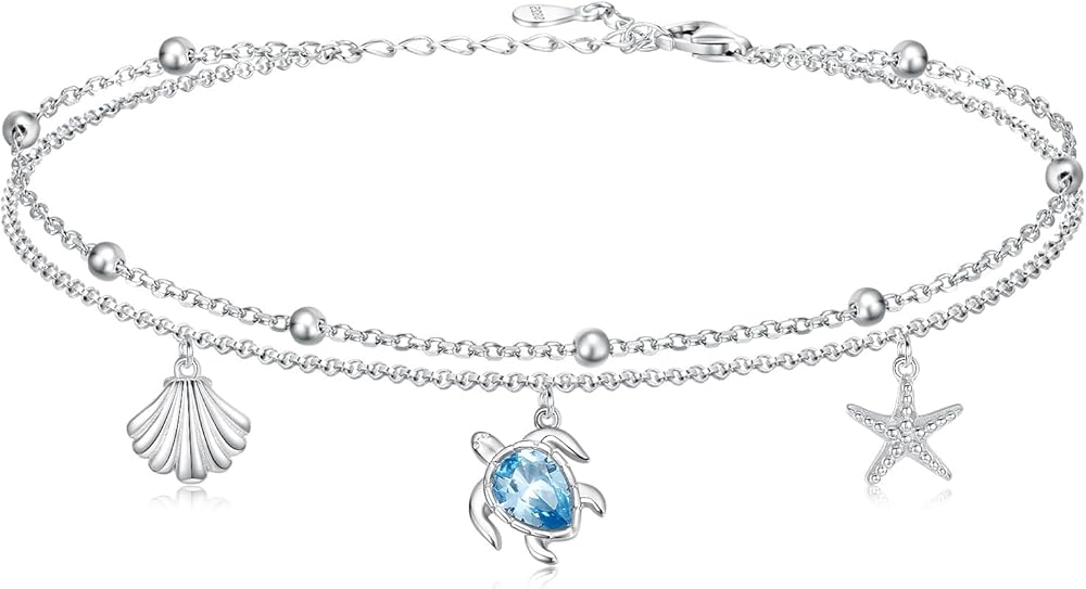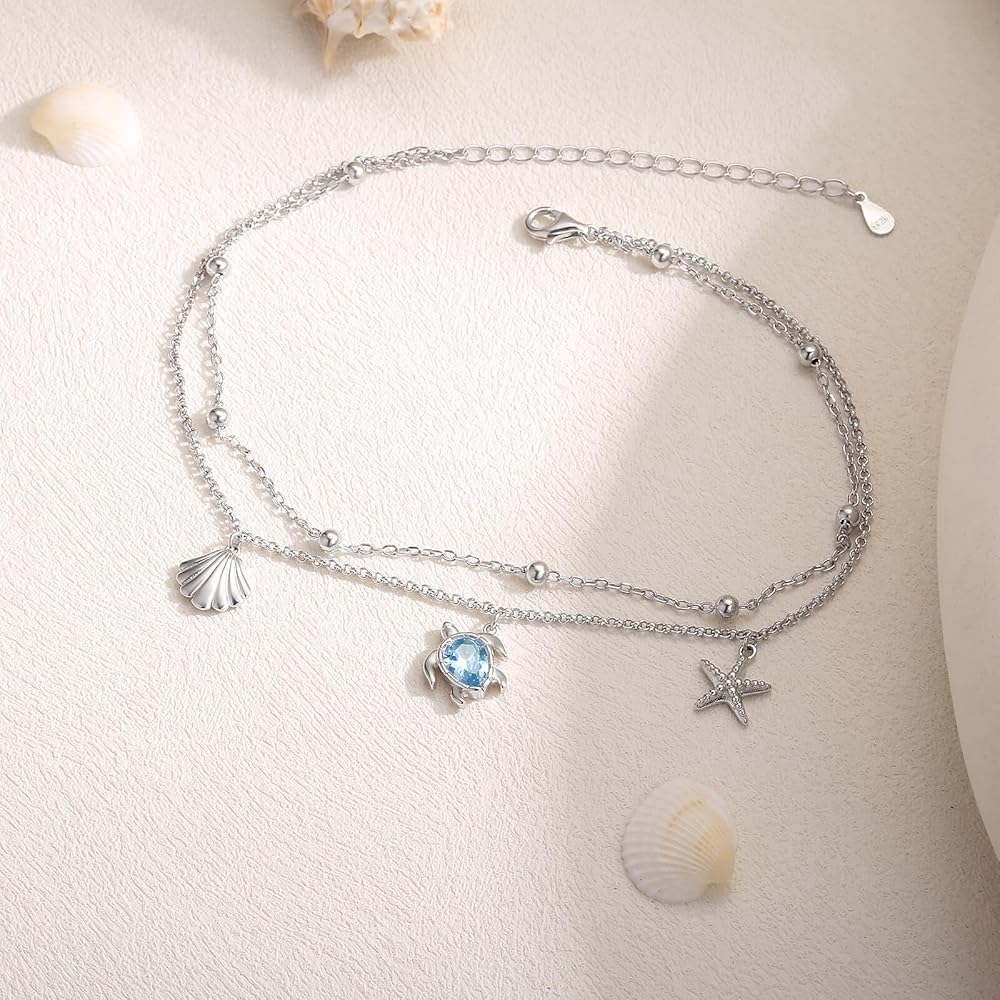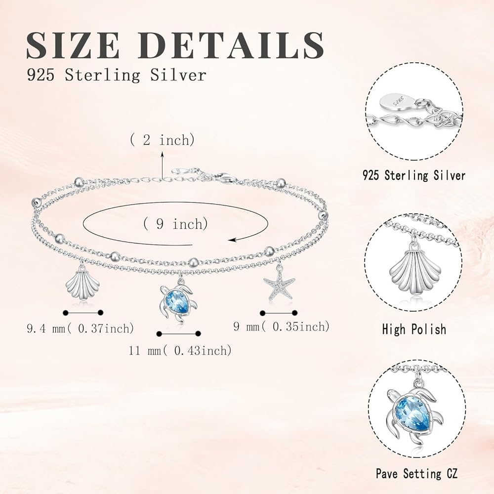 Blue Beach Style: This Anklet combines the design of sea turtle with blue cz, starfish and shells, perfect for decorating your ankles in summer, especially when you go to the beach and Hawaii.A perfect accessory to your outfit for daily or beach theme things.