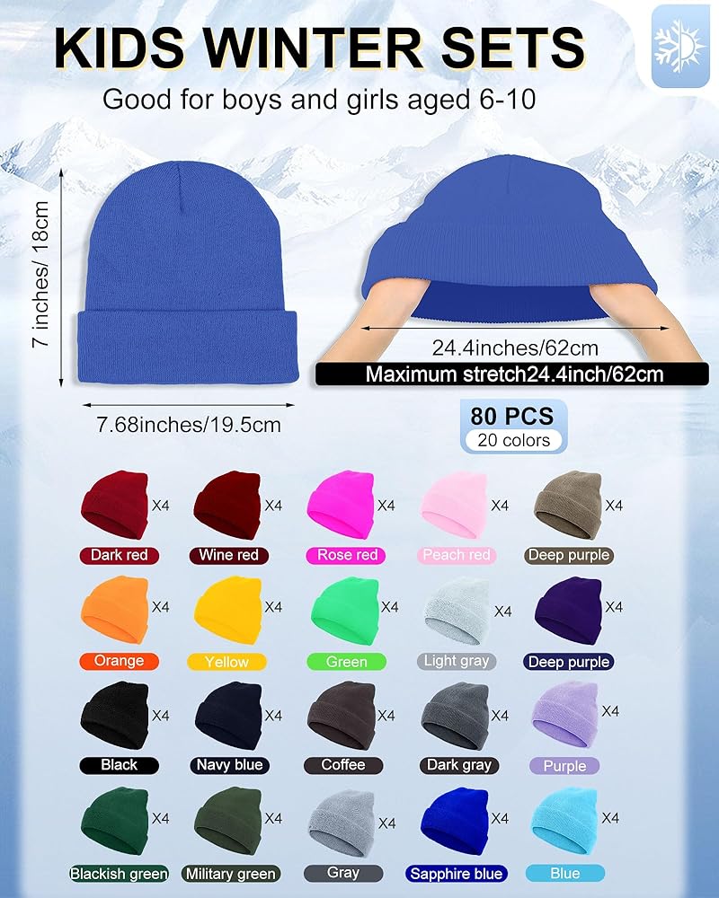• Rich Beanie Hats: you will receive 80 pieces of winter hats in 20 colors, each color has 4 pieces, including black, dark green, dark gray, gray, light gray, brown, claret, red, rose red, peach red, pink, dark purple, military green, dark green, khaki, light blue, royal blue, yellow, purple, orange, easy for you to match your clothes, you can also share them with the people you love
