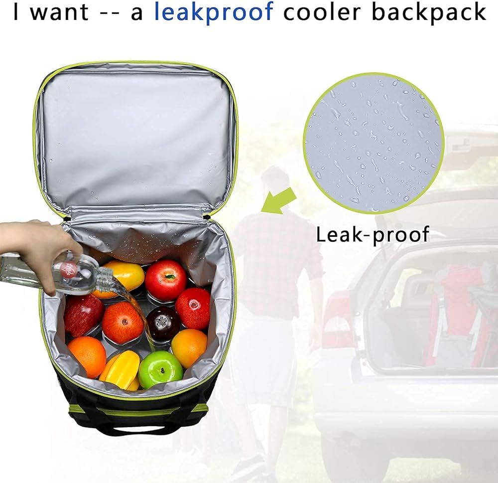 حقيبة ظهر باردة ومعزولة ومضادة للتسرب: مادة عازلة عالية الكثافة وبطانة مانعة للتسرب داخل حقيبة الظهر المبردة تعمل معًا للتأكد من منع التسرب والحفاظ على الطعام ساخنًا أو باردًا لساعات. البطانة الداخلية مصنوعة من مادة ممتازة وسهلة التنظيف.