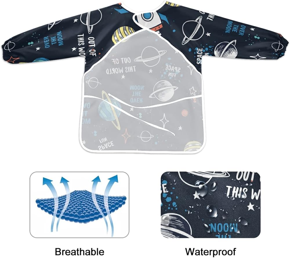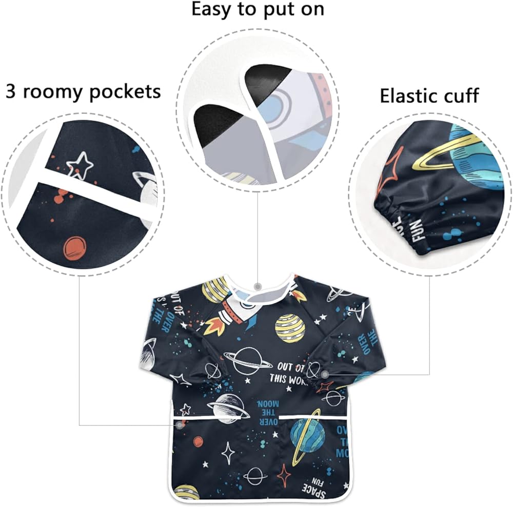 ملابس بولاز للأطفال 2-4 ملابس فنية لتناول الطعام مع جيوب صاروخ فضائي كوكب مقاوم للماء بأكمام طويلة