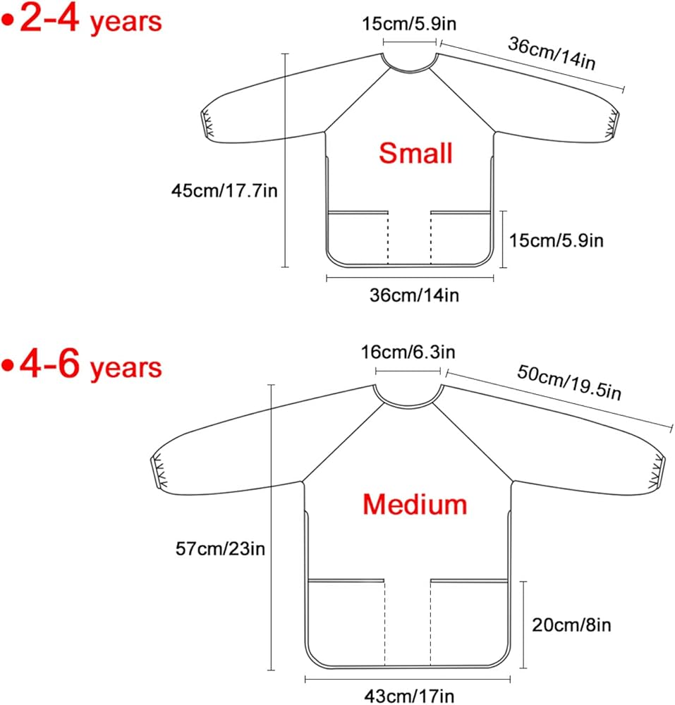 • 【Good Quality】Children smocks are made of waterproof polyester material. The kids smocks can be repeated use and easy to clean.