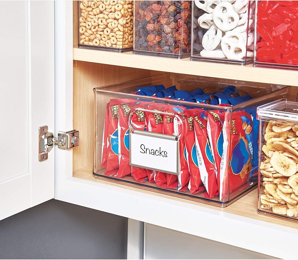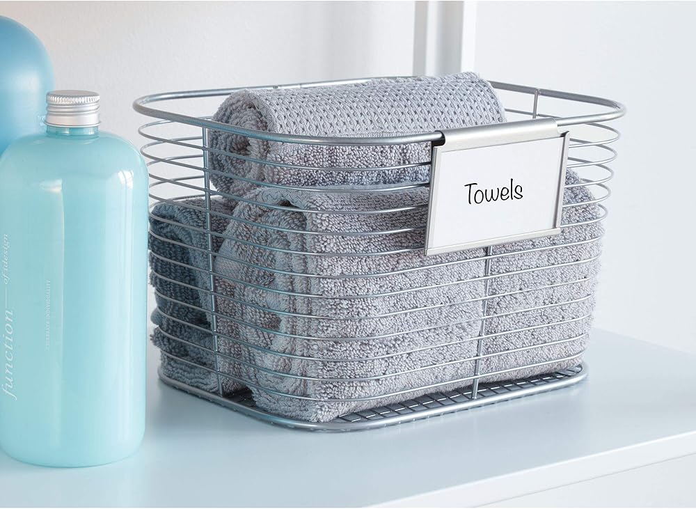 Upgrade your home organization with the iDesign Label Holder Clips. This set of three reusable label holders are ideal for labeling bins, baskets, and totes to quickly identify items inside, and the adjustable clip fits over a variety of organizer materials including fabric, jute, plastic, wire, metal, and more. Designed with versatility in mind, these label holders can be used in the bathroom, bedroom, closet, kitchen, pantry, office, or in any room around the home that you need additional organization. Simply slide a handwritten or printed label into the holder and clip it on to the side of the organizer to set up, then just replace the label when it's time to reorganize. The modern design with satin silver finish matches a variety of home decor styles, while the durable steel construction is made to last and stands up to every day use. Measuring 3. 6" x 2. 5" x 0. 58" each, these label clips provide a larger writing space for easy-to-read labeling. With iDesign by InterDesign, you can #LiveSimply every day.