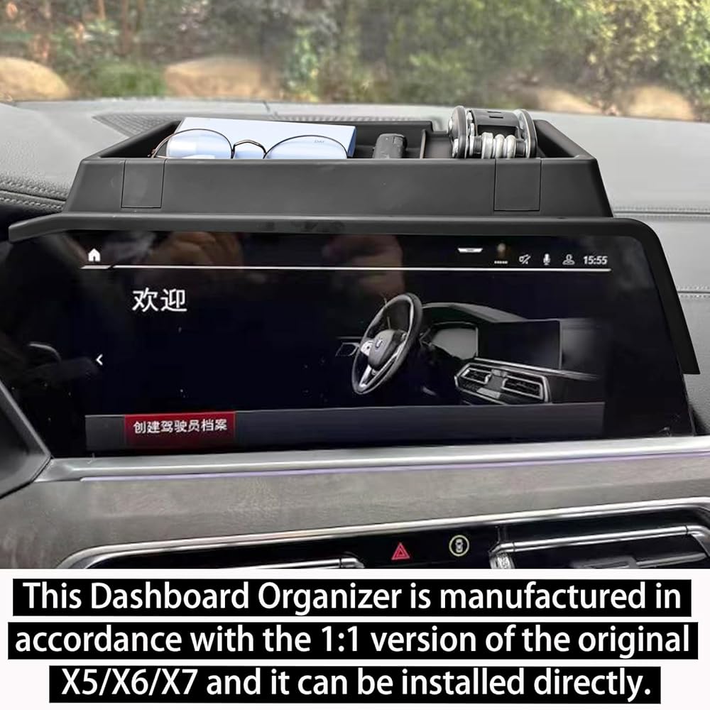 صينية تنظيم تخزين لوحة القيادة متوافقة مع ملحقات 2019-2022 BMW X5 G05/ X7 G07 و2020-2022 X6 G06، صينية تخزين لوحة القيادة خلف الشاشة ومسند الذراع وصندوق حاوية مقسم مثبت على لوحة القيادة