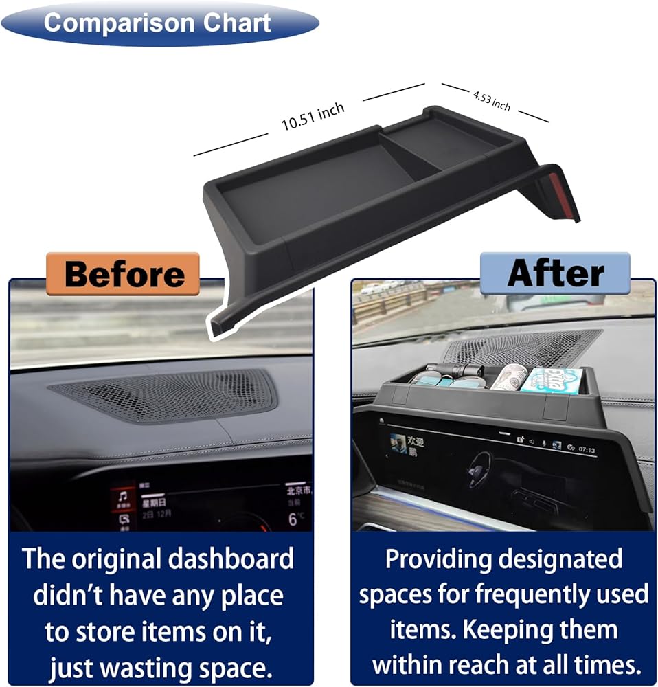 مساحة تخزين إضافية رائعة - تعد صينية تنظيم لوحة القيادة X5 هذه بمثابة مساعد تنظيم رائع لجهاز X5 / X6 / X7، مما يجعل من السهل الحفاظ على مقتنياتك في متناول اليد أثناء السير على الطريق.