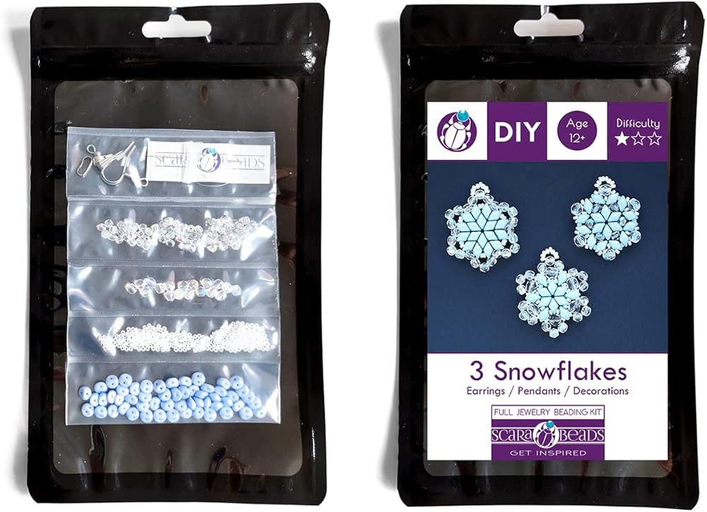 WIDE USAGE - Try beading with this Real Czech Glass Beads Kit, this set of Beads for Jewelry Making will definetely will tick all the boxes. This Beading & Jewelry Making Kit includes everything you may need to craft with High quality Glass Beads! It can be a perfect Christmas Beading Gift such as Earrings, Pendant or DIY Home Decoration - you decide what you want to create! You can craft 3 Snowflakes of any design, all the same or three different.