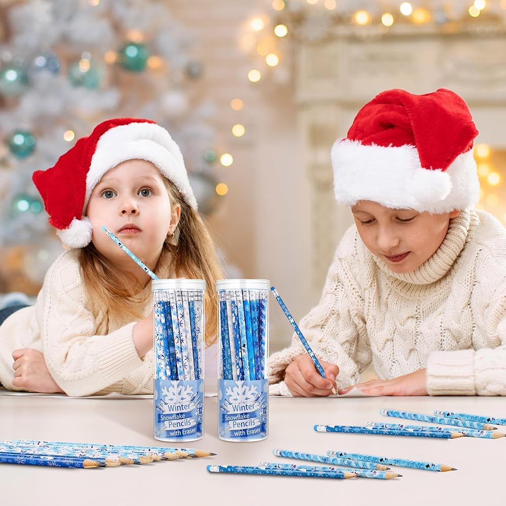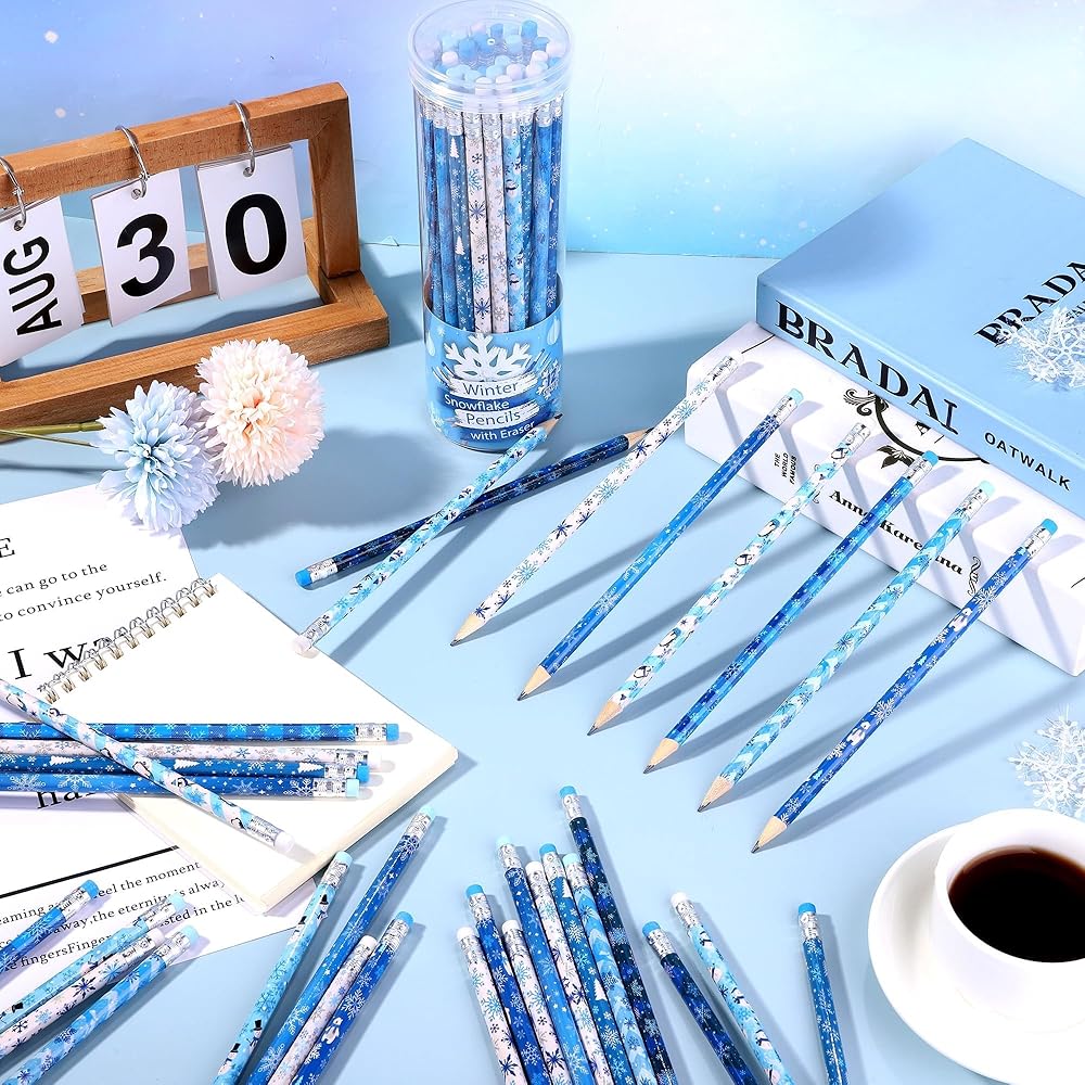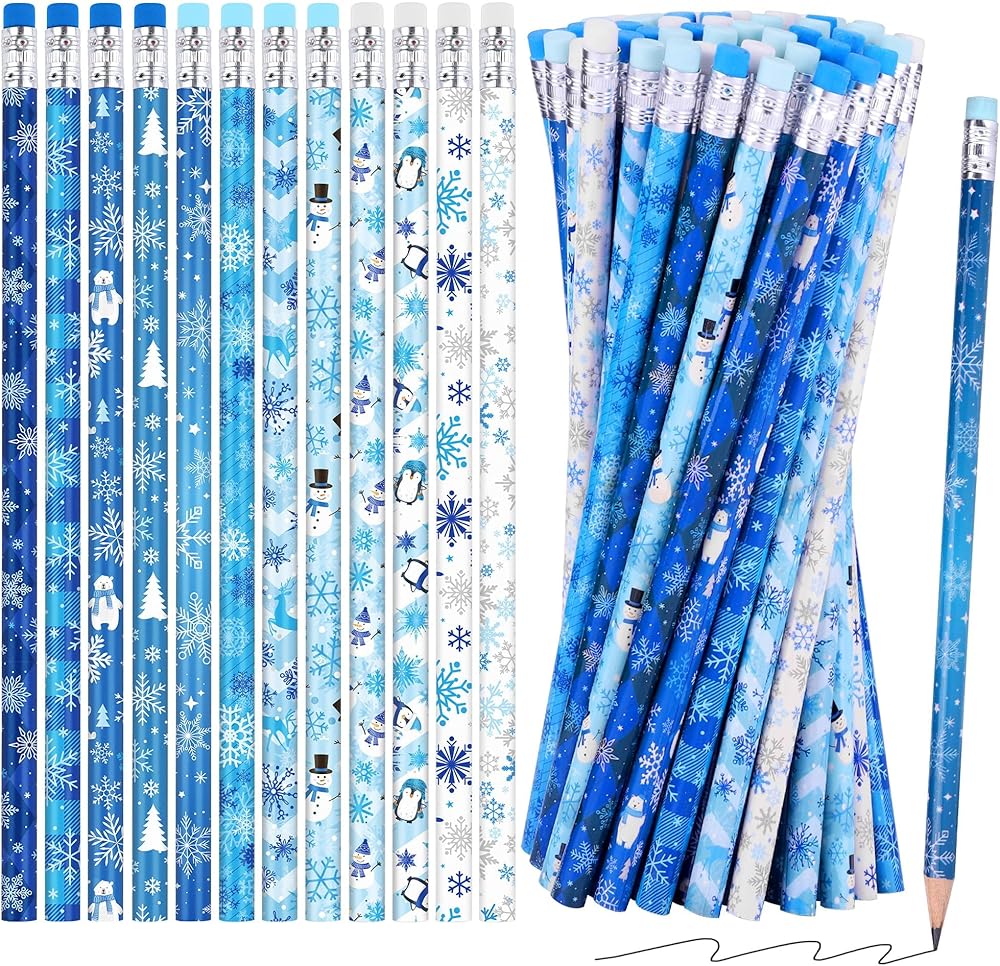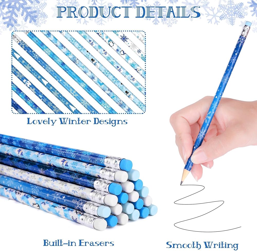 أقلام عالية الجودة: أقلام الرصاص الشتوية هذه مصنوعة من الجرافيت وخشب الزيزفون الفاخر، مما يضمن قلبًا قويًا ومقاومًا للكسر يكتب بسلاسة؛ الجزء العلوي من كل قلم رصاص مزود بممحاة لتصحيح الأخطاء على الفور