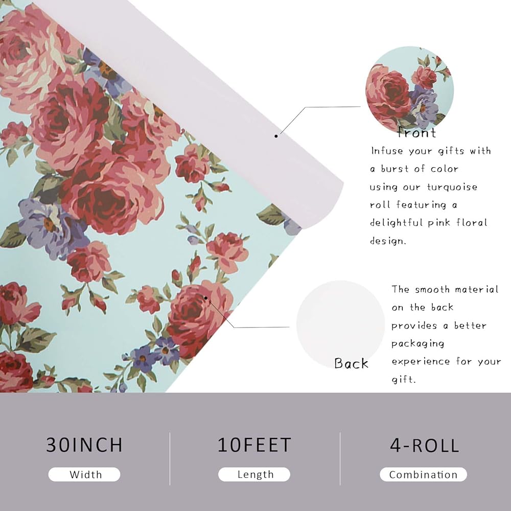 تغطية واسعة: تحتوي كل مجموعة على 4 لفات من ورق تغليف عيد الميلاد بقياس 76.2 سم × 10 أقدام، مما يوفر إجمالي 100 قدم مربع من مساحة التغليف. مثالية لجميع احتياجات تغليف هدايا عيد الميلاد الخاصة بك.