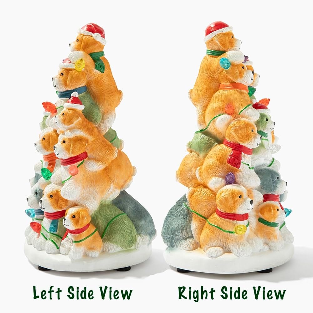 • From the pawdorable pups that have joined together to form a doggie Christmas tree to the string of holiday lights surrounded them, this colorful figurine will be a holiday favorite for seasons to come.