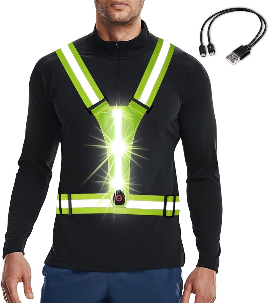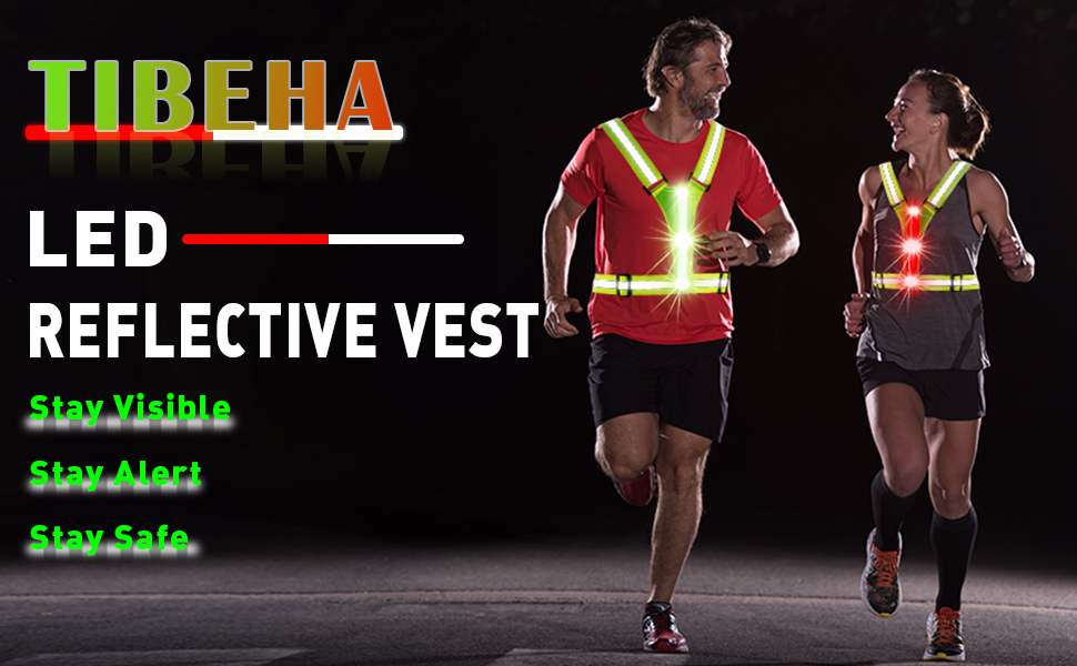 سترة جري عاكسة للضوء بإضاءة LED من Tibeha للنساء والرجال والجري الليلي والمشي، قابلة لإعادة الشحن¡