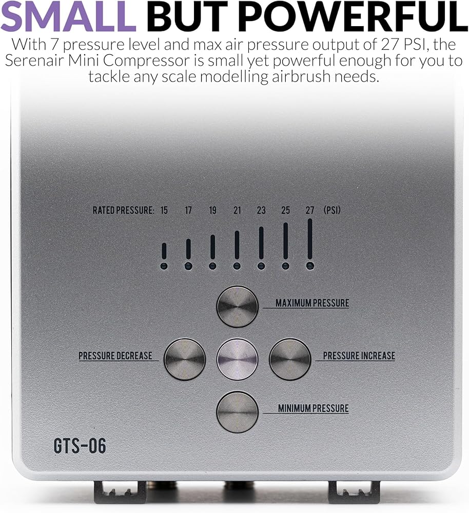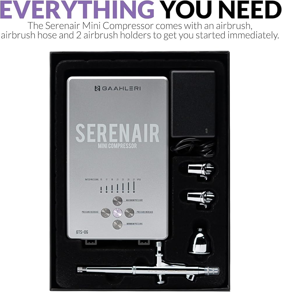 تم تصميم ضاغط Serenair Mini Compressor من سلسلة Gaahleri Ambition GTS-06 لعشاق البخاخة الذين يحتاجون إلى القوة والراحة في عبوة مدمجة. سواء كنت تتعامل مع نماذج مفصلة أو مشاريع أكبر، فإن ضاغط Serenair Mini يقدم كل ما تحتاجه للدقة والتحكم.