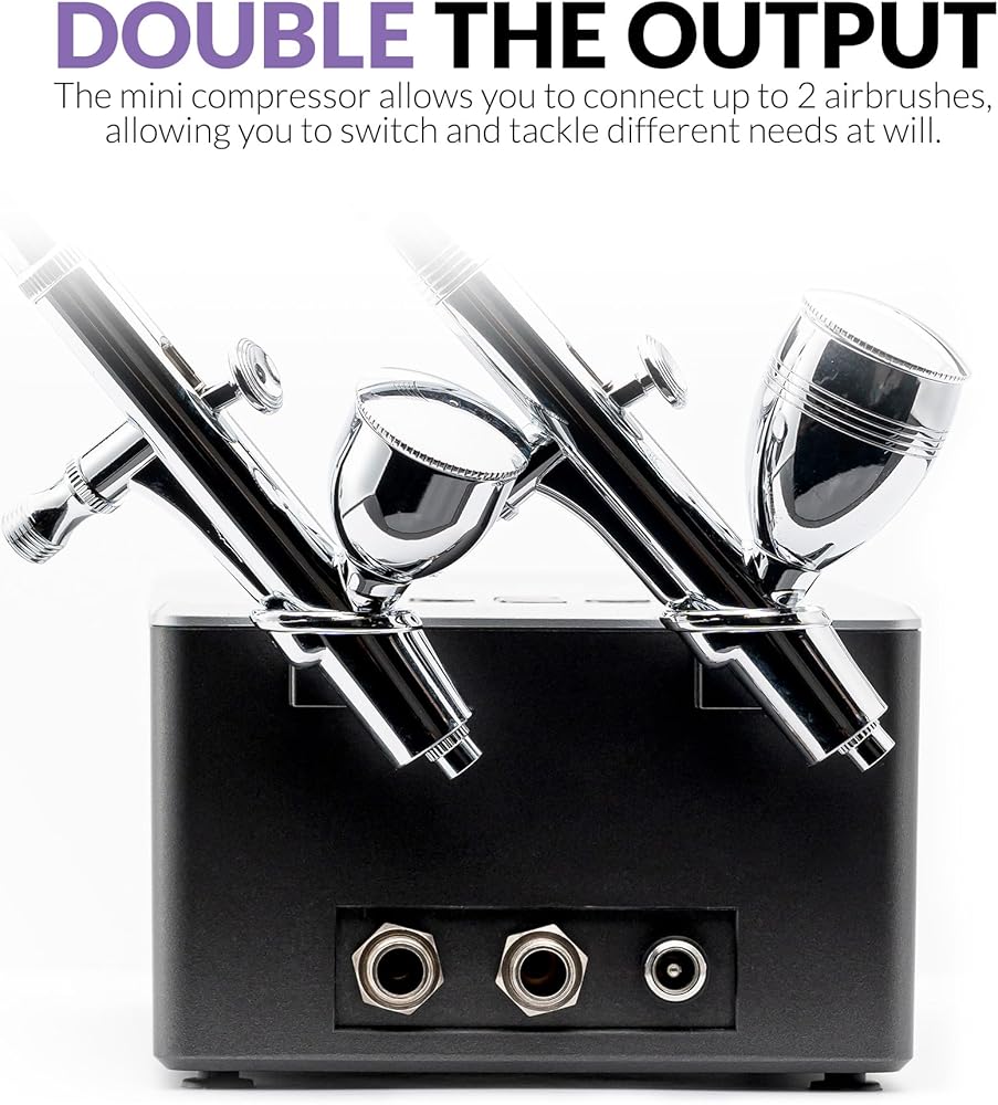 صغير ولكنه قوي: على الرغم من حجمه الصغير، يتميز الضاغط بـ 7 مستويات ضغط والحد الأقصى لضغط الهواء يبلغ 27 رطل لكل بوصة مربعة، مما يمنحك تعدد الاستخدامات للتعامل مع جميع احتياجات تشكيل الفرشاة الهوائية الخاصة بك. قم بتوصيل ما يصل إلى فرشتين هوائيتين في وقت واحد باستخدام هذا الضاغط الصغير، مما يسمح لك بالتبديل بين الأدوات دون عناء والتكيف مع متطلبات المشروع المختلفة بسهولة.