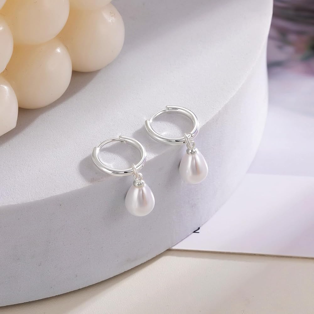 لآلئ عالية الجودة: أقراط لؤلؤية متدلية أنيقة وصغيرة الحجم، لآلئ ممتازة تم اختيارها يدويًا من المياه العذبة