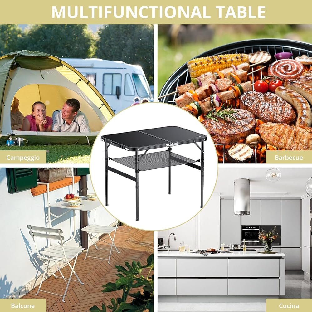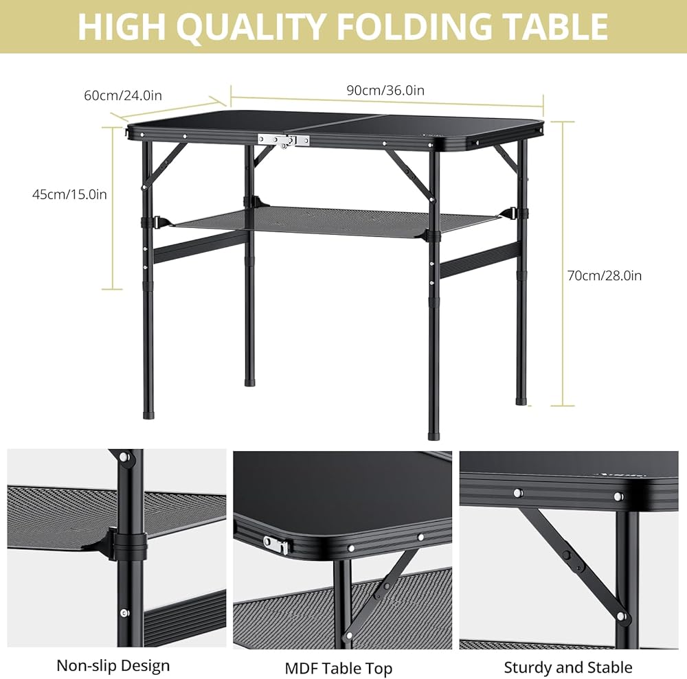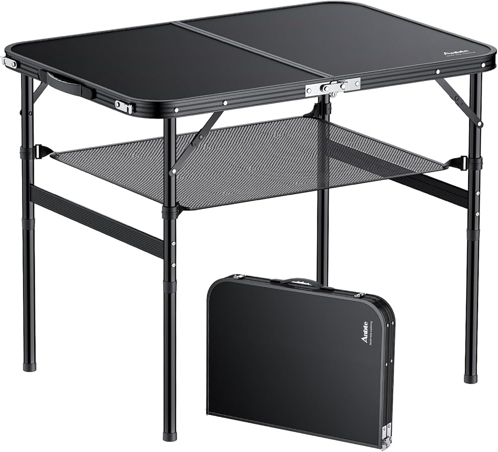 اي ان بي تي اي طاولة تخييم قابلة للطي، 90 سم × 60 سم، طاولة نزهة بارتفاع قابل للتعديل بحد اقصى 70 سم مع شبكة تخزين، طاولة محمولة من خليط معدني من الالومنيوم، خفيفة الوزن، مقبض محمول للسفر (اسود)