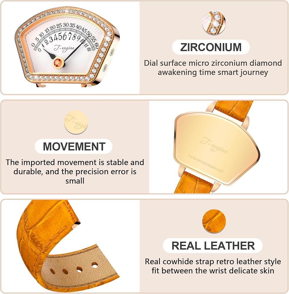 • متانة لامعة: احتضن المزيج المثالي من القوة والأناقة الرائعة مع ساعاتنا النسائية الفاخرة المصنوعة من الفولاذ المقاوم للصدأ والمزودة بحزام ساعة من الجلد الأصلي. تلتقط هذه الساعة التناظرية المزينة بماسة مبهرة بريق وسحر قطع الماس الفاخرة