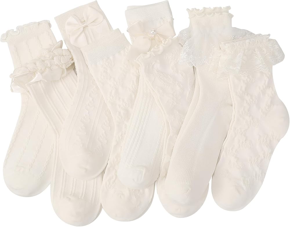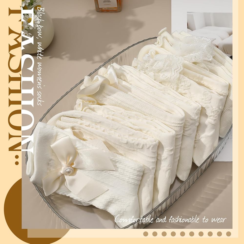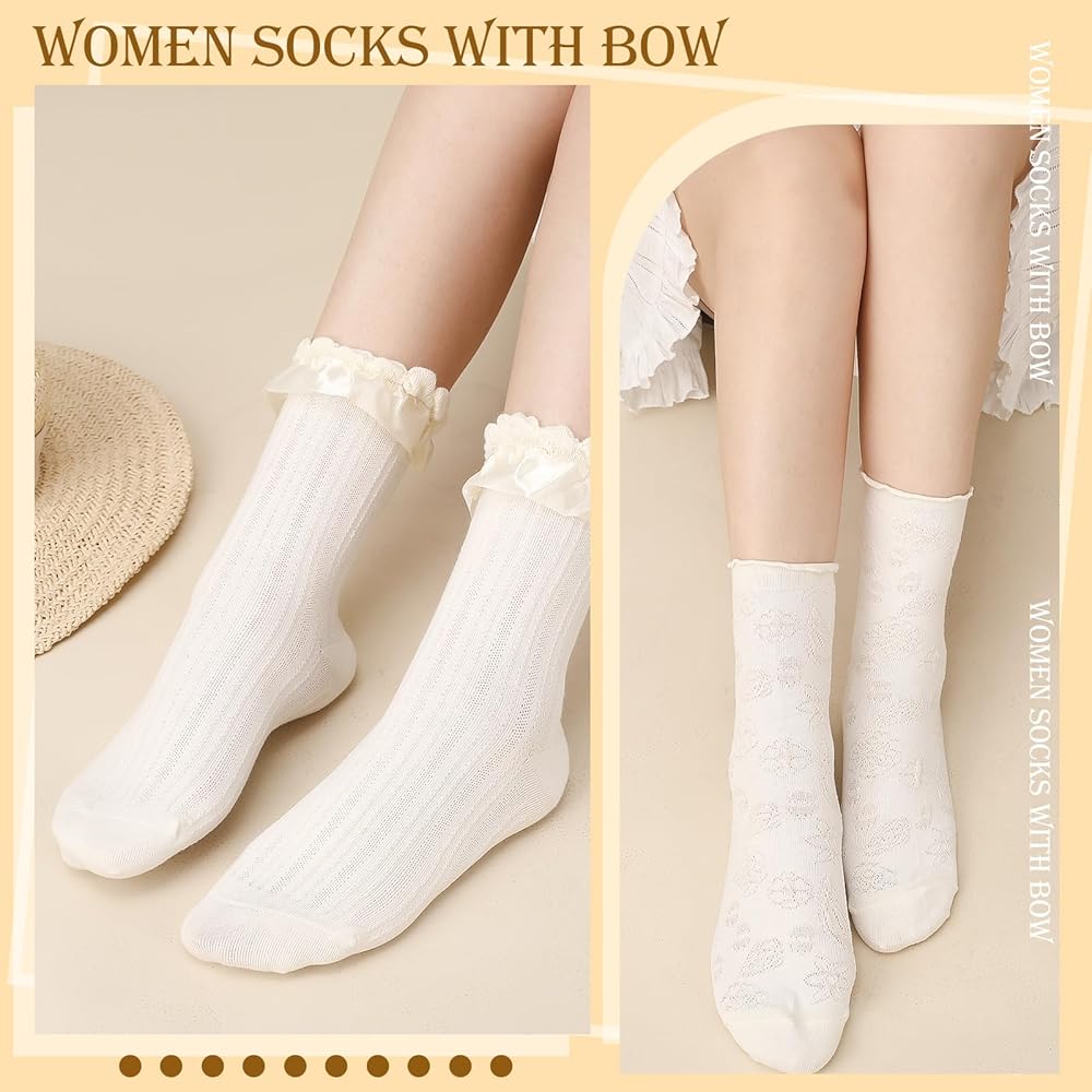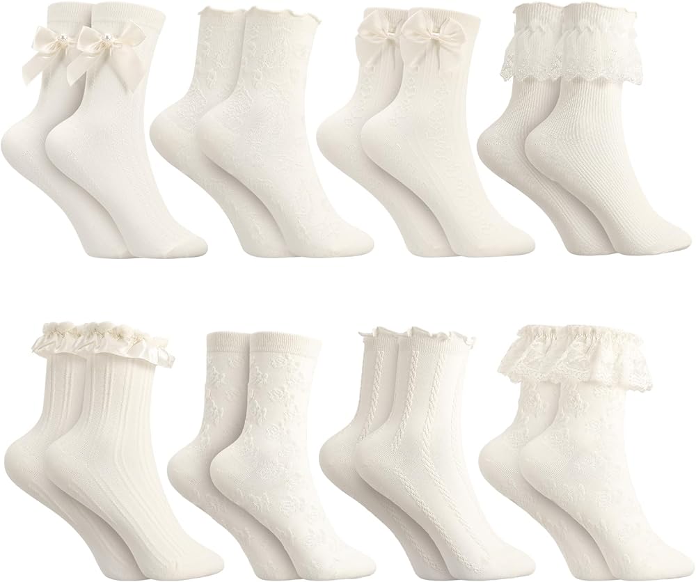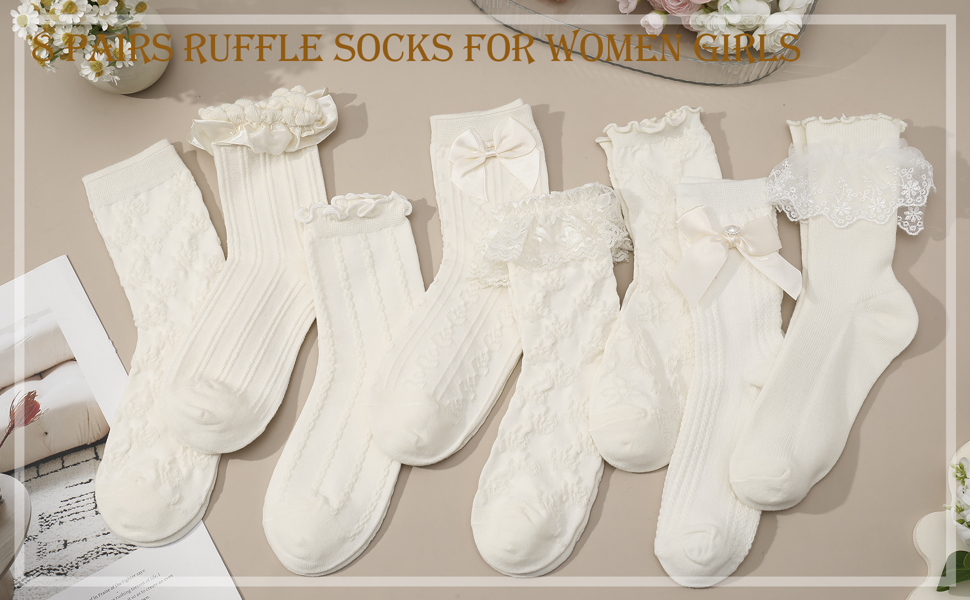 【تشمل العبوة】سوف تحصل على 8 أزواج من الجوارب فوق الكاحل، وزخرفة من الدانتيل، وعقدة القوس، والجوارب الدائرية بأنماط مختلفة، فهي عالية الجودة، ومطبوعة بشكل جميل، ومتوفرة بكميات كافية لتلبية احتياجاتك البديلة على المدى الطويل.