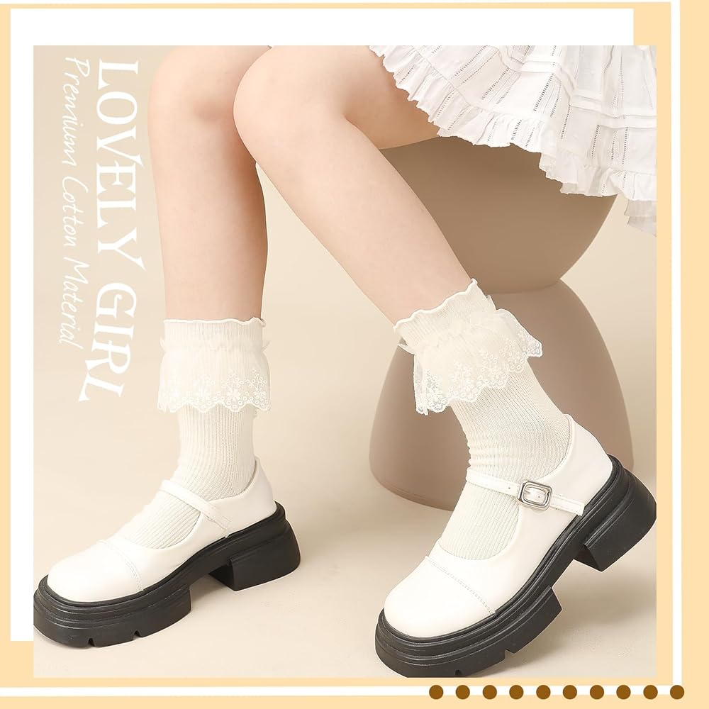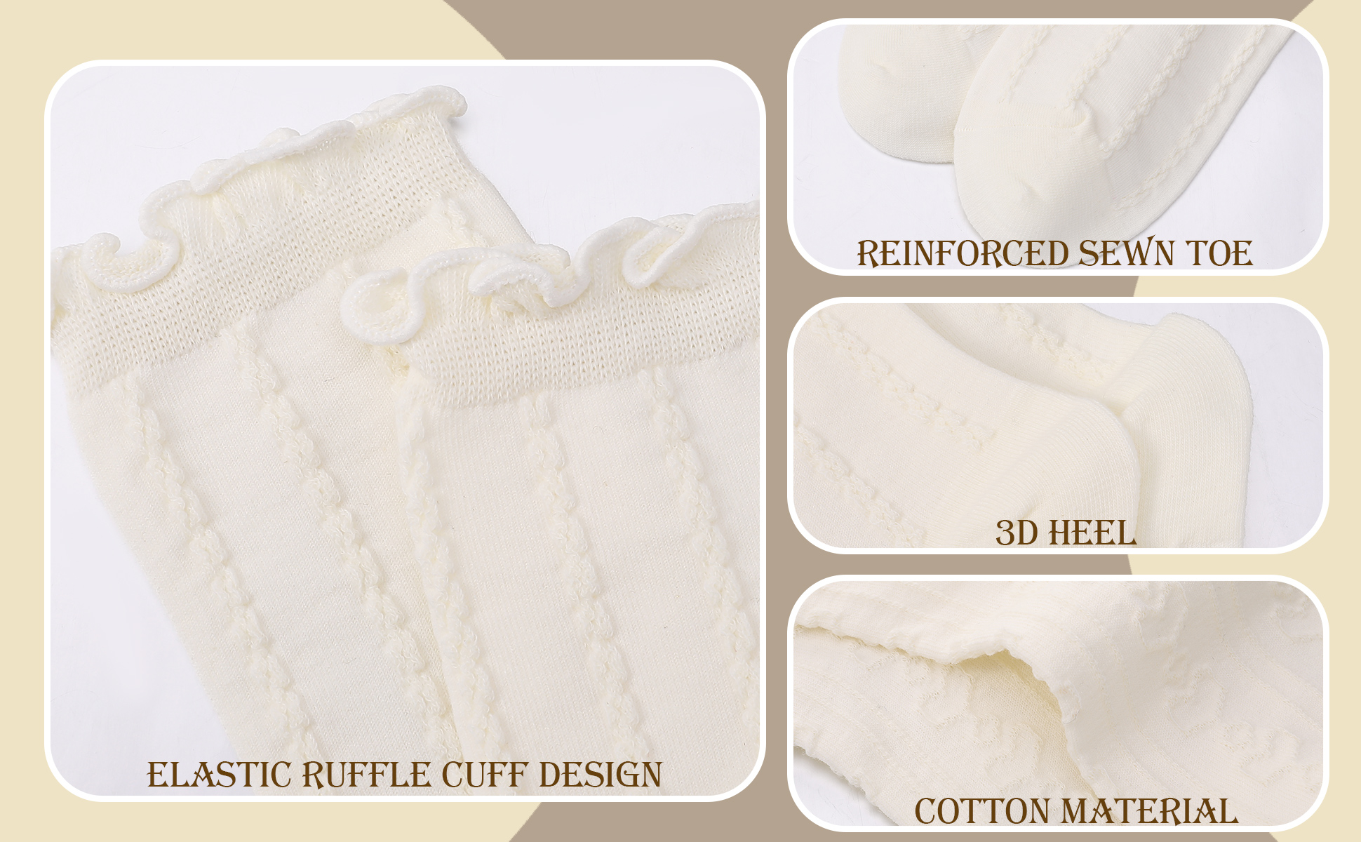 【تصميم مكشكش】هذه الجوارب النسائية ذات الكشكشة من الدانتيل هي مزيج من الأناقة والراحة، ويضيف التصميم المكشكش الرائع من الدانتيل لمسة من الجاذبية والمرح إلى أي ملابس، تمنحك هذه الجوارب البيضاء للكاحل شعورًا جميلاً للغاية، وتجذب المزيد من الأنظار.