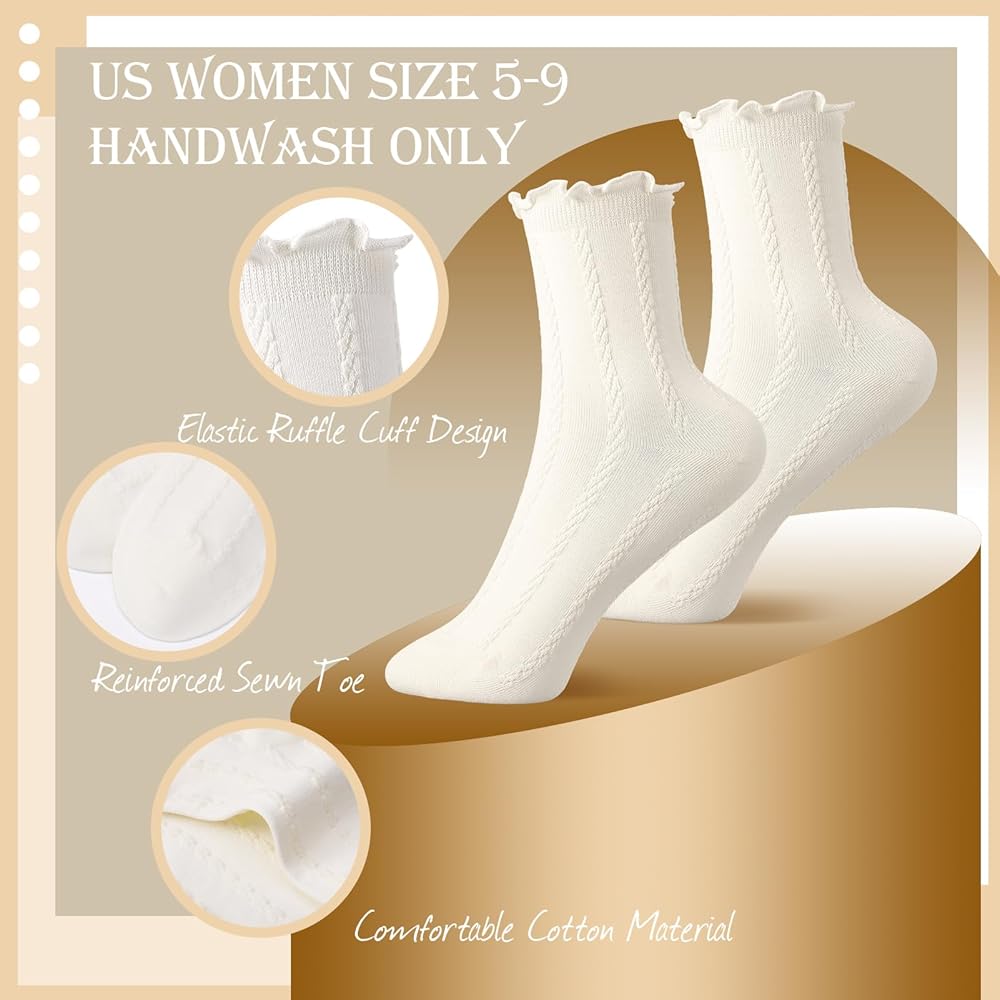 【مقاس واحد】مقاس حذاء نسائي 5-9، جوارب كاحل مكشكشة تناسب معظم الفتيات والنساء، مناسبة لجميع المواسم، نسيج ناعم يتميز ببعض التمدد ومريح في الارتداء