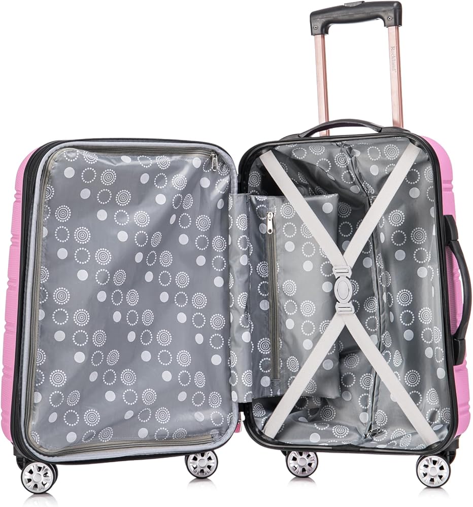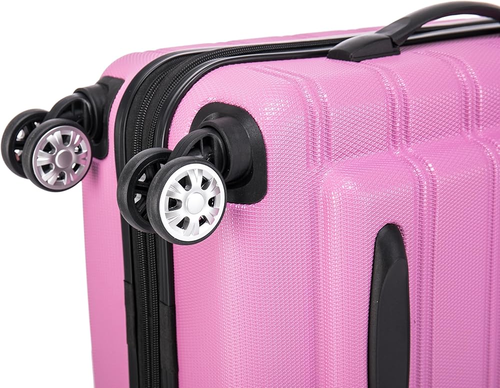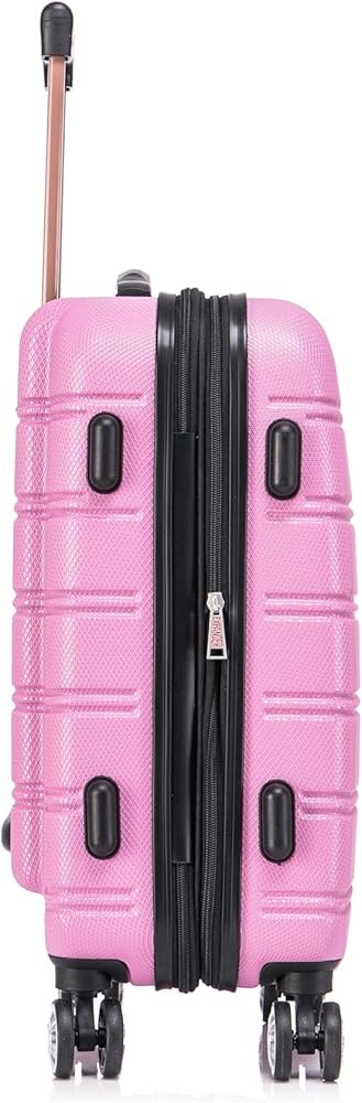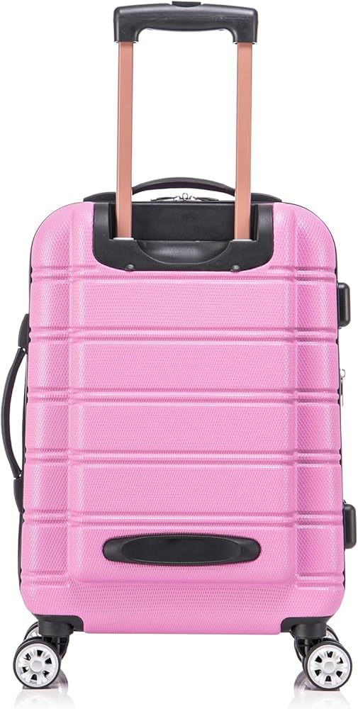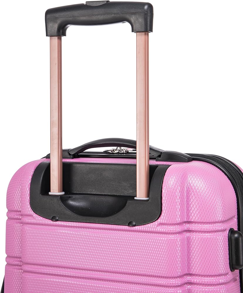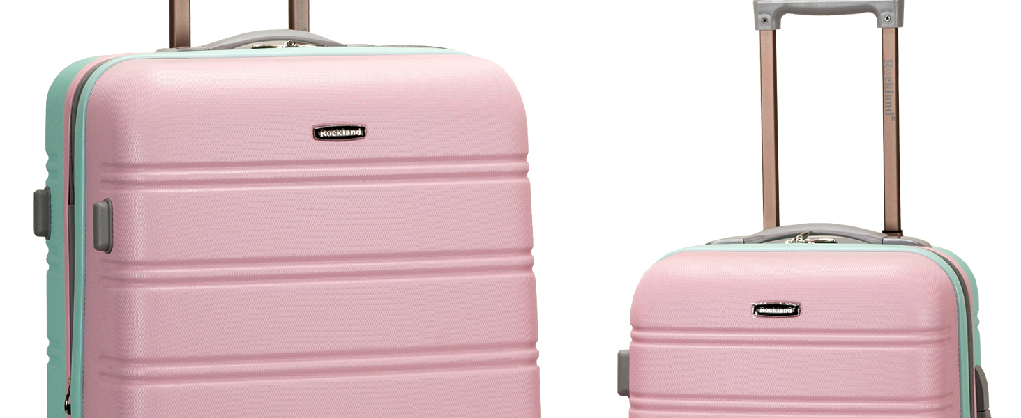 This carry on is made of ABS. This material is extremely lightweight, durable, and protects the contents of your luggage. Multi-directional double spinner wheels rotate 360 degrees for easy maneuverability. This luggage allows you to pack more while avoiding the excess weight surcharges imposed by most airlines. Multi-directional spinner wheels for easy maneuverability Modern internal chrome telescoping handle with push button handle. 5 year warranty. Carry on: 22"x13. 5"x9" (with wheels), Tote bag: 14"x5.5"x11.5"