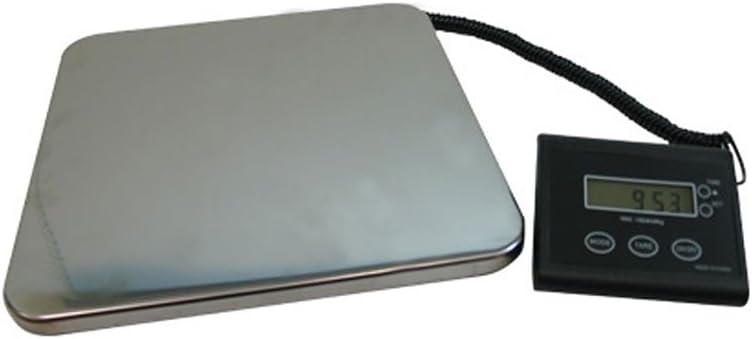 Weston Products Digital Stainless Steel Scale 24-1001-WSpecifications:- Powered by 110 volt AC adapter or 9 volt battery (battery included)- Displays weight in pounds or kilograms in lb. increments- Displays time when not in use- Remote display can be wall mounted- Stainless steel platform measures 11 1/4" x 11 3/4" (132 square inch platform)Features:- Tare function- Auto shut off- Backlit LCD display- Max Weight: 330 lbs.