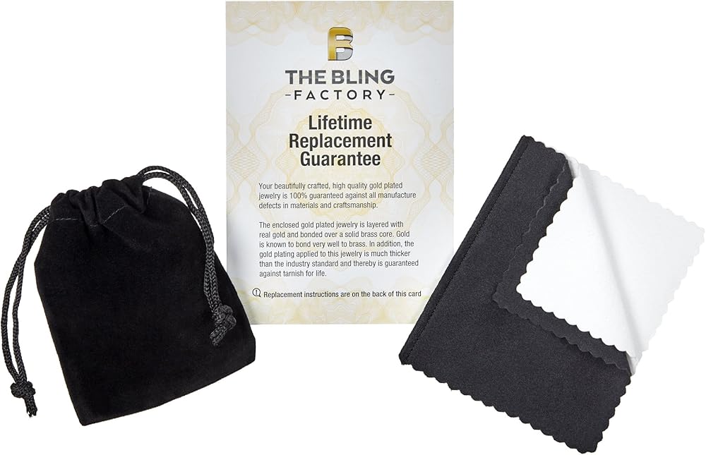 Plated with a thick layer (0.25 mils) of real 14k yellow gold bonded onto a solid brass core (metal weight of about 9 grams)