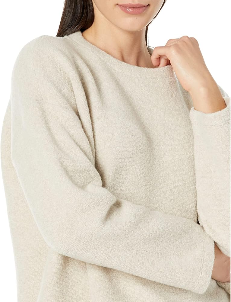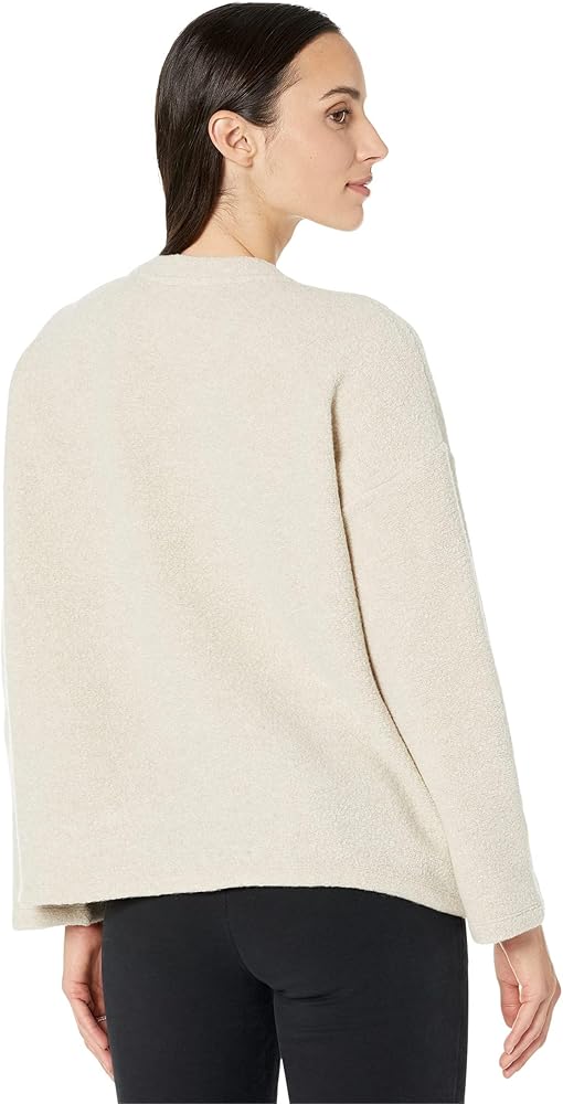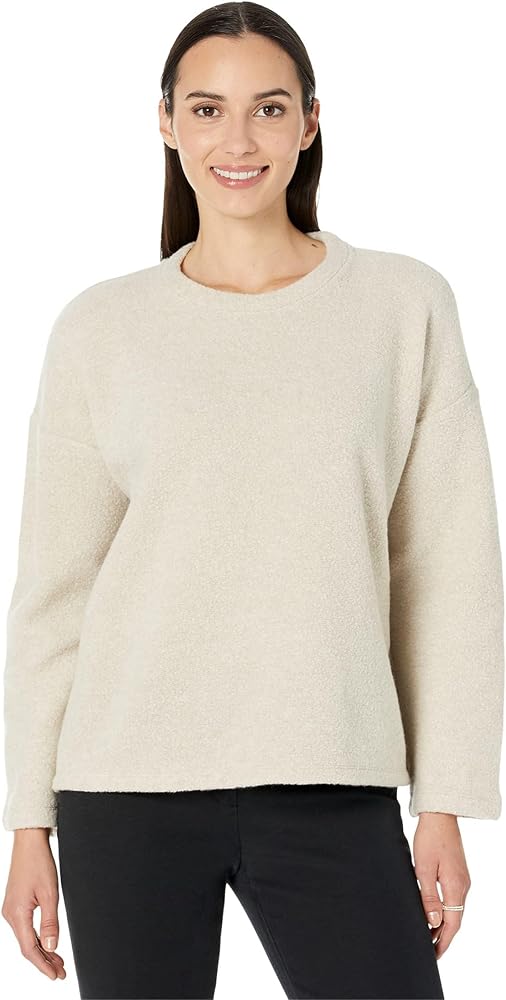 Stay cozy while keeping your style on top wearing the Eileen Fisher Crew Neck Box Top. Pullover style. Crew neckline, drop shoulders, and long sleeves. Straight hemline. 70% virgin wool, 30% polyamide. Hand wash. Imported.