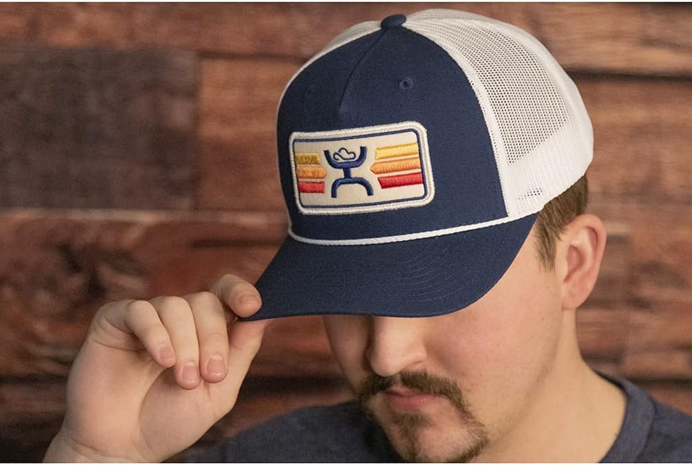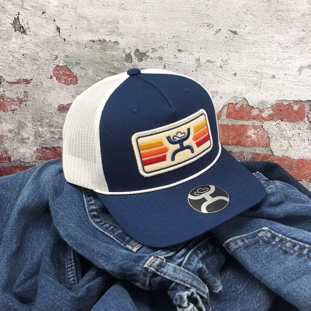 قبعة سائق الشاحنة بشعار Sunset للرجال من Hooey باللون الأزرق الداكن مقاس واحد