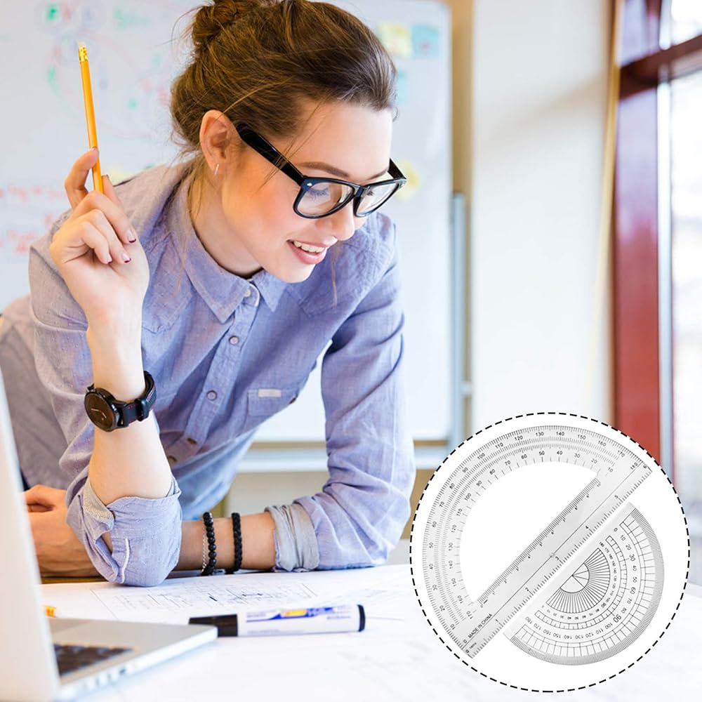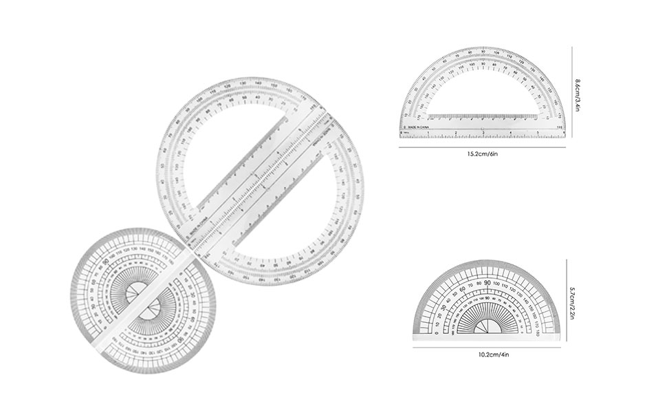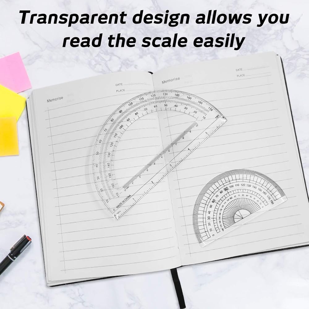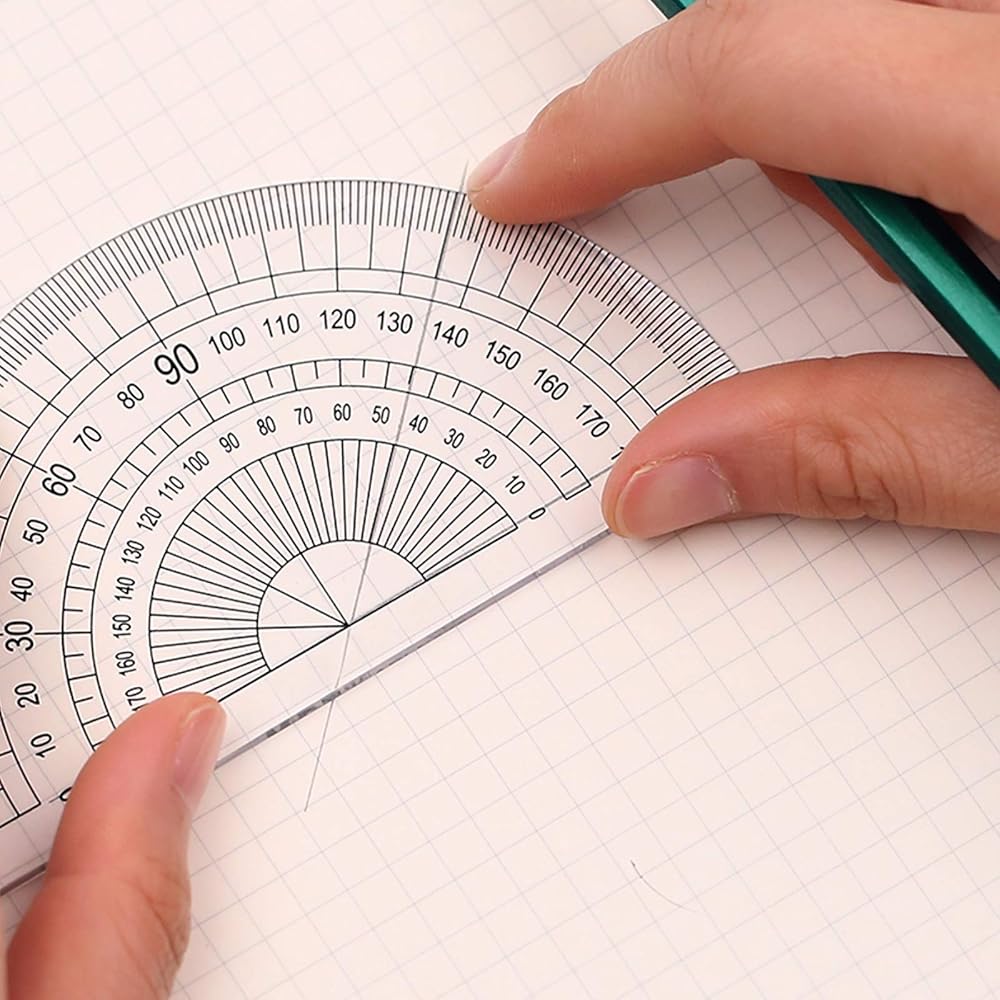 تطبيق واسع - المنقلة البلاستيكية هي أداة رائعة لتعلم الرياضيات، وهي مناسبة للأطفال والمعلمين والطلاب والعاملين في المكاتب وما إلى ذلك. فهي أسهل بكثير على الأطفال في استخدامها عند قياس الزوايا في الكتب المدرسية أو أوراق العمل أو دفاتر الملاحظات لأنها صغيرة بما فيه الكفاية لتناسب الزاوية التي يقيسونها.