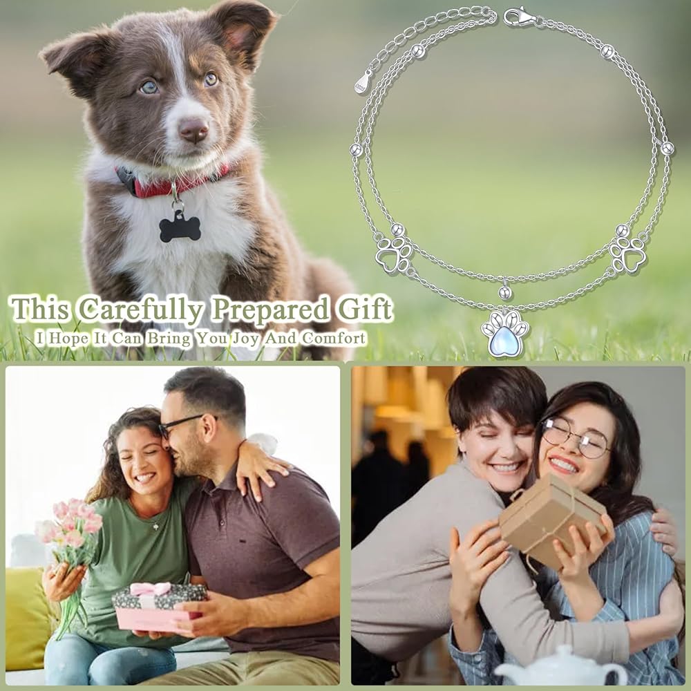 • The sterling silver paw print created moonstone layer link anklet will be wrapped in a delicate gift box. A nice gift for wife, girlfriend, best friend, daughter, granddaughter, mom, grandma, sister or yourself