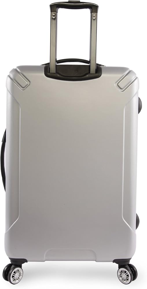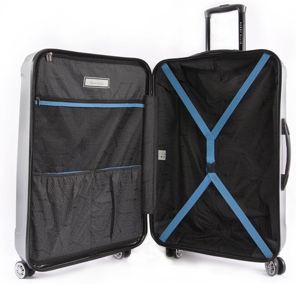 Zip through the terminal and to your destination with this hard side, spinner luggage from Perry Ellis. Travel is made easy with a 4-wheel spinner system and top and side handles.