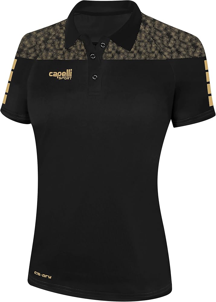 Easily transition between the field and post-practice activities with the Capelli Sport women's short sleeve polo tshirt. These athletic polos feature a sleek embossed upper panel and a rib knit collar over the Tribeca training line signature for a professional look, and are great for golf, fishing, hiking, or even just for casual wear. Composed of lightweight and durable polyester fabric, these polo tshirts feature a CS-DRY function which pulls sweat away from your skin to keep you dry and comfortable. For professional-looking apparel that feels comfortable and is made to last, these collared polo shirts are an excellent choice.