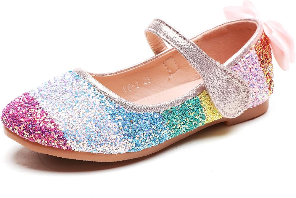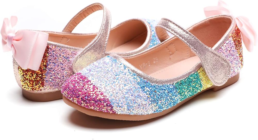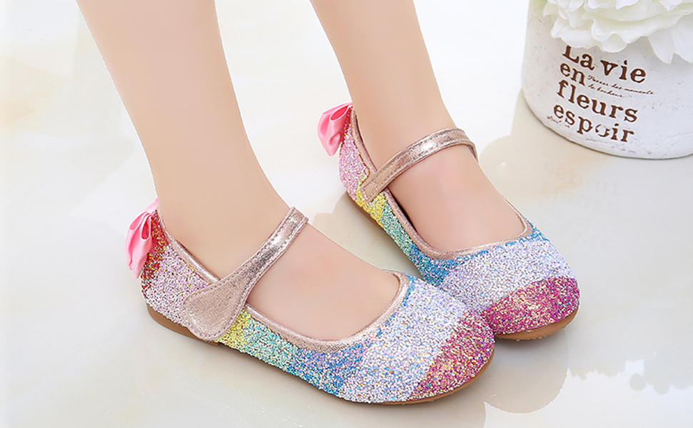 الفتاة قوس قزح بريق الباليه شقق الأميرة ماري جين فستان الأحذية