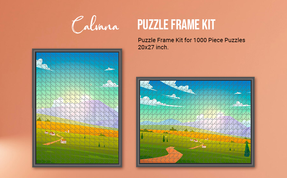 (عبوة من قطعتين) إطار أحجية أسود من كالفانا مقاس 20 × 27 لألغاز الصور المقطوعة، طقم إطار صور أحجية مكون من 1000 قطعة، مجموعة تأطير عرض الألغاز، ملحقات التركيب والتعليق، تصميم بدون وهج، تجميع سهل