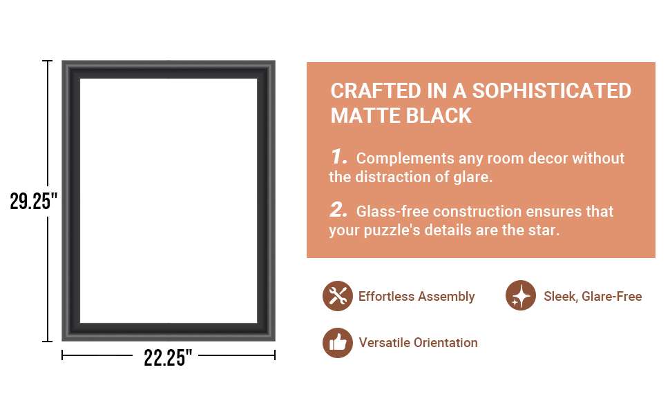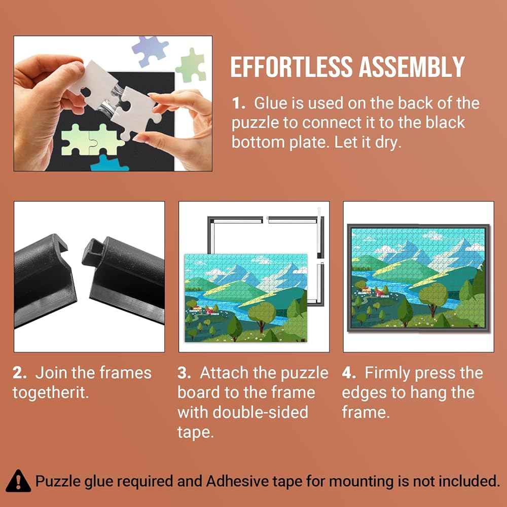 التجميع بدون جهد والملاءمة الآمنة: تم تصميم لوحة الألغاز الكبيرة الخاصة بنا لسهولة الاستخدام، وتتميز بعملية تجميع مباشرة تغطي لغزك بشكل آمن. بفضل الدعامة المتينة من اللوح الخشبي والإطار المثبت معًا، يتم تثبيت عملك الفني بقوة في مكانه. ملاحظة: لا يتم تضمين غراء اللغز المطلوب للتركيب