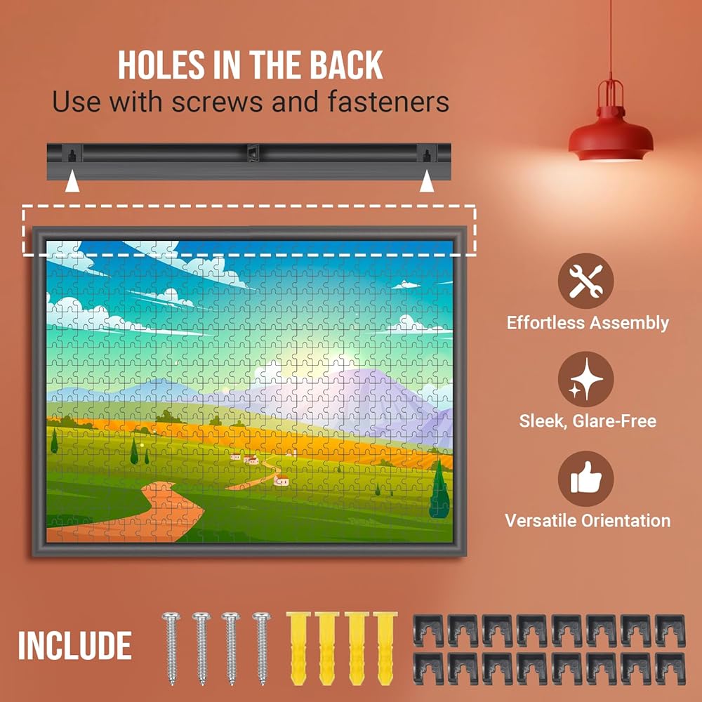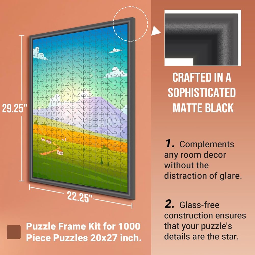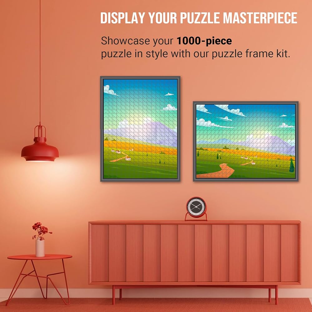 اعرض تحفة الألغاز الخاصة بك: اعرض اللغز المكون من 1000 قطعة بأناقة مع إطار اللغز مقاس 20 × 27 بوصة. مثالية لإبراز عملك الشاق في مقدمة ديكور منزلك، تتيح مجموعة إطارات الصور الأحجية هذه للألغاز المكتملة أن تصبح لوحة فنية جدارية مذهلة، مما يلتقط الفرح والإنجاز في رحلة حل الألغاز الخاصة بك