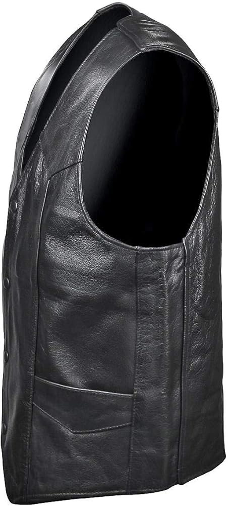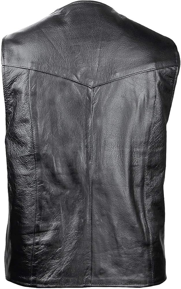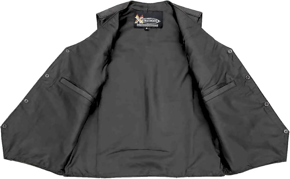 Xelement 1201 Black Motorcycle Leather Vest for Men - A High Quality Light Weight and Sleek Design Premium Durable Thick Cowhide Biker Club Vest With 4 Snap Button Closure and Inside Pockets