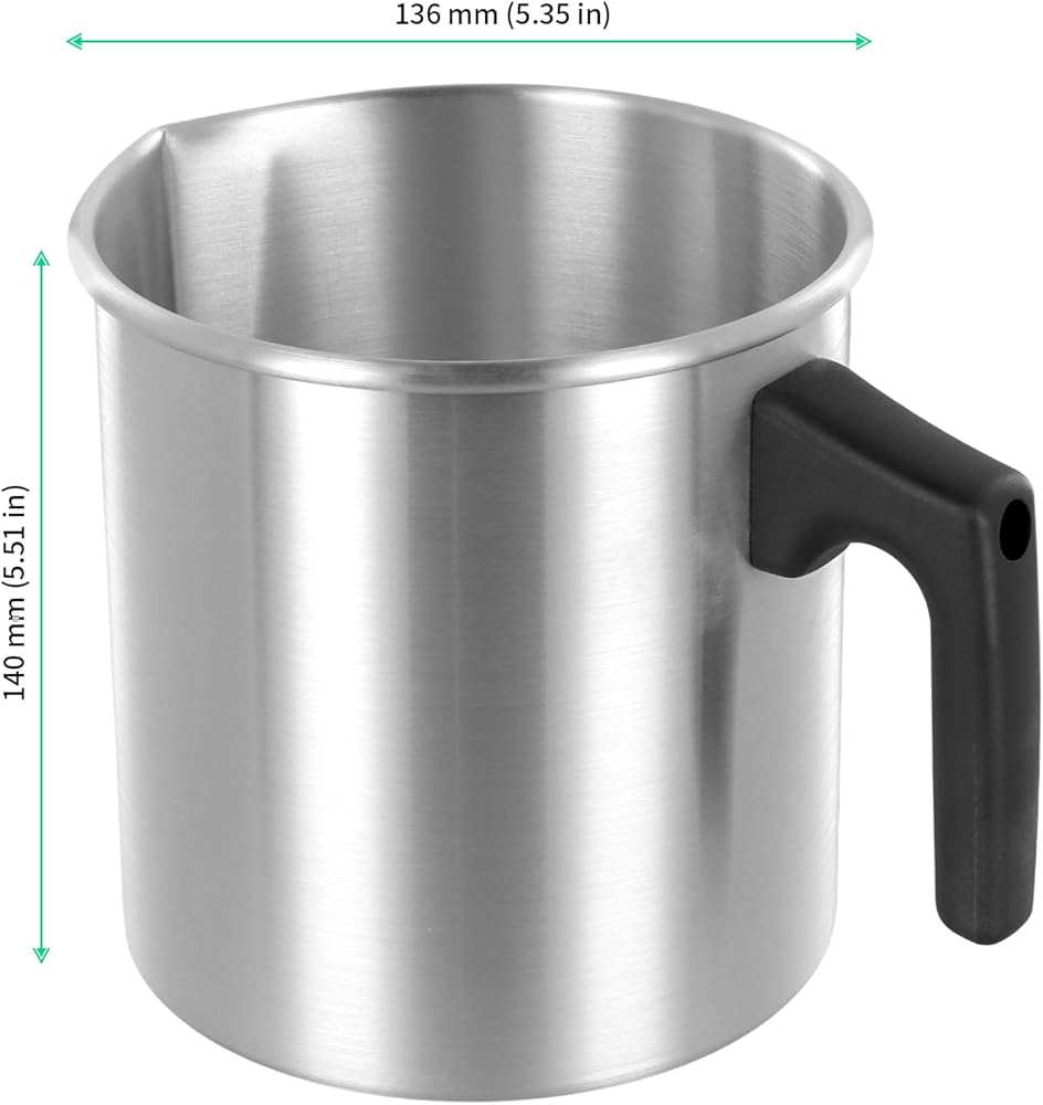 جودة فاخرة - إبريق صنع الشموع هذا مصنوع من مادة الألومنيوم خفيفة الوزن. تم تصميم البناء السلس لسهولة التنظيف. تساعد الموصلية الحرارية الممتازة الشمع على التسخين والتبريد بسرعة. إنها الأداة المثالية لصنع الشموع التي تصنعها بنفسك.