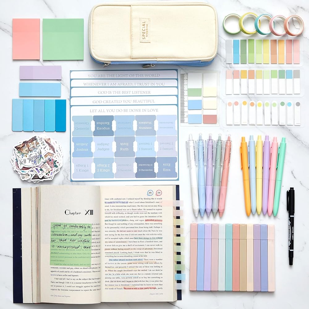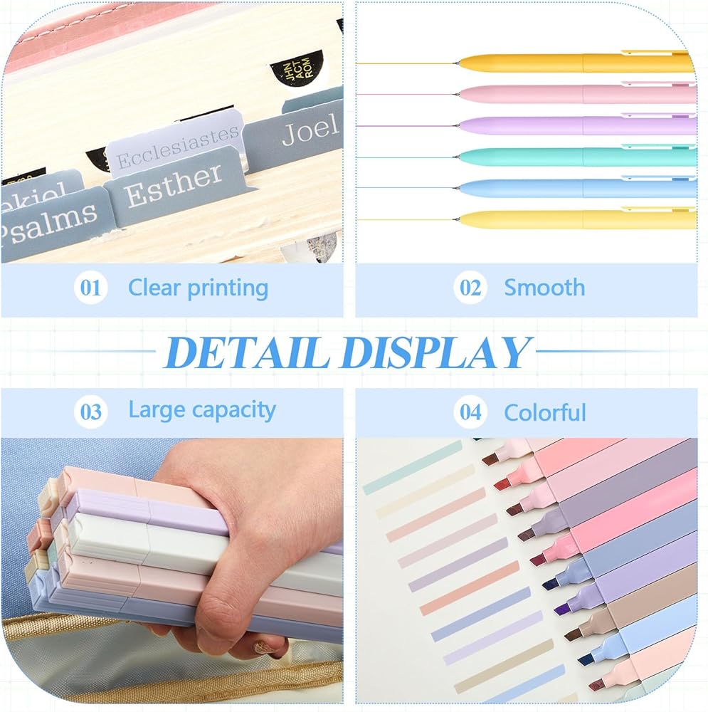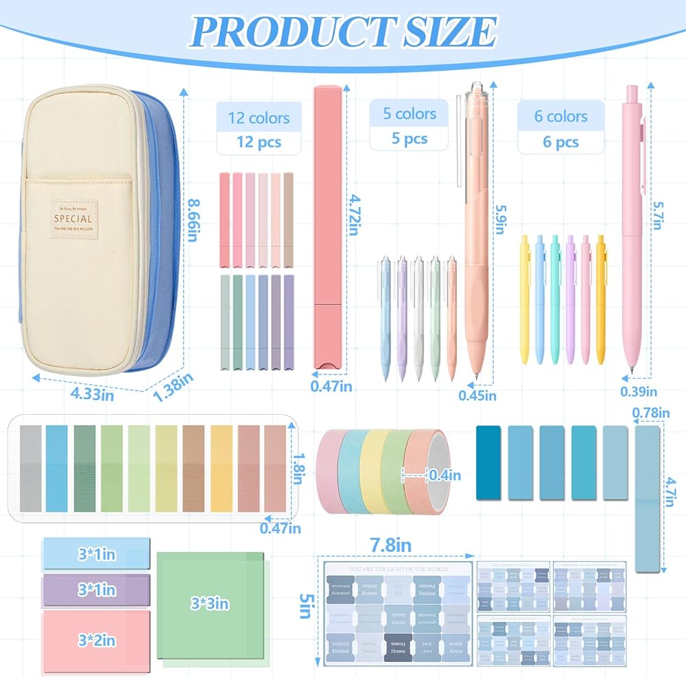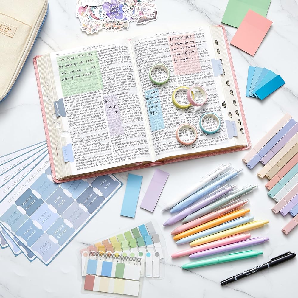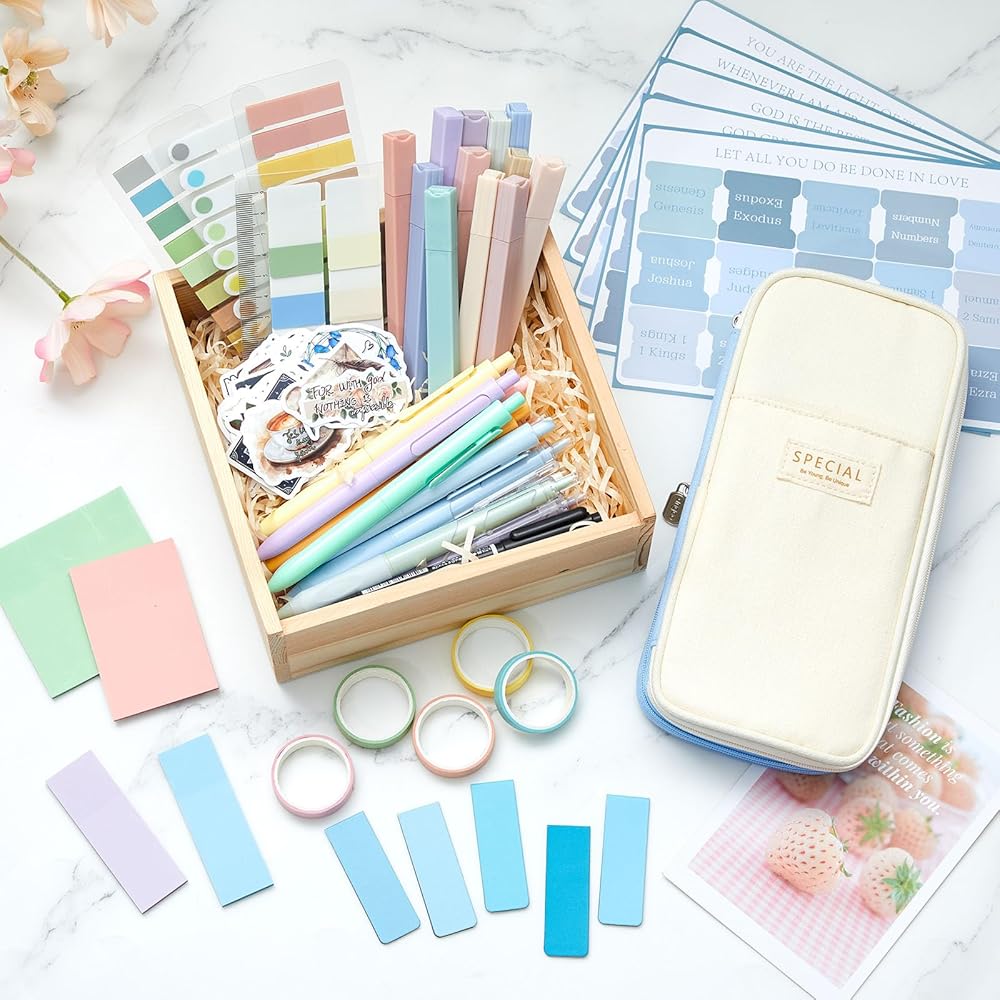 Rounding off our aesthetic school supplies set are 5 rolls of tape. These versatile pieces add creativity to your notebooks, journals, or bible pages. They are reusable, easy to tear without damage, and adhere well, providing a fun and cute touch to your note-taking or artistic endeavor.