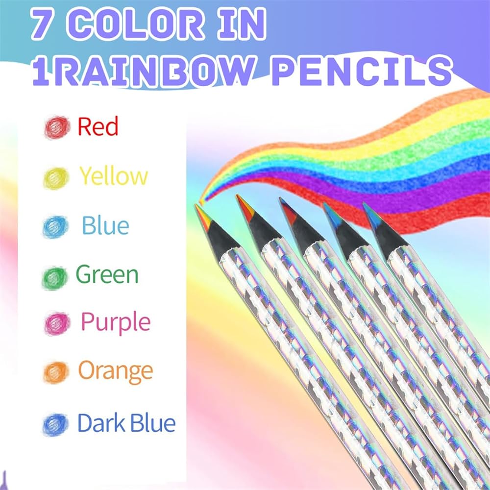 أقلام قوس قزح أقلام رصاص متعددة الألوان 7 ألوان في 1 قلم تلوين لوازم فنية للكبار رسم رسم 12 قطعة