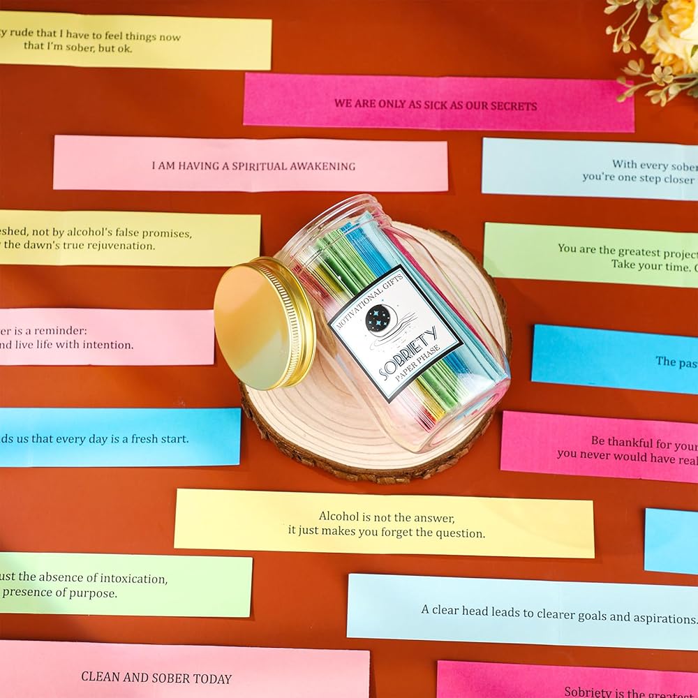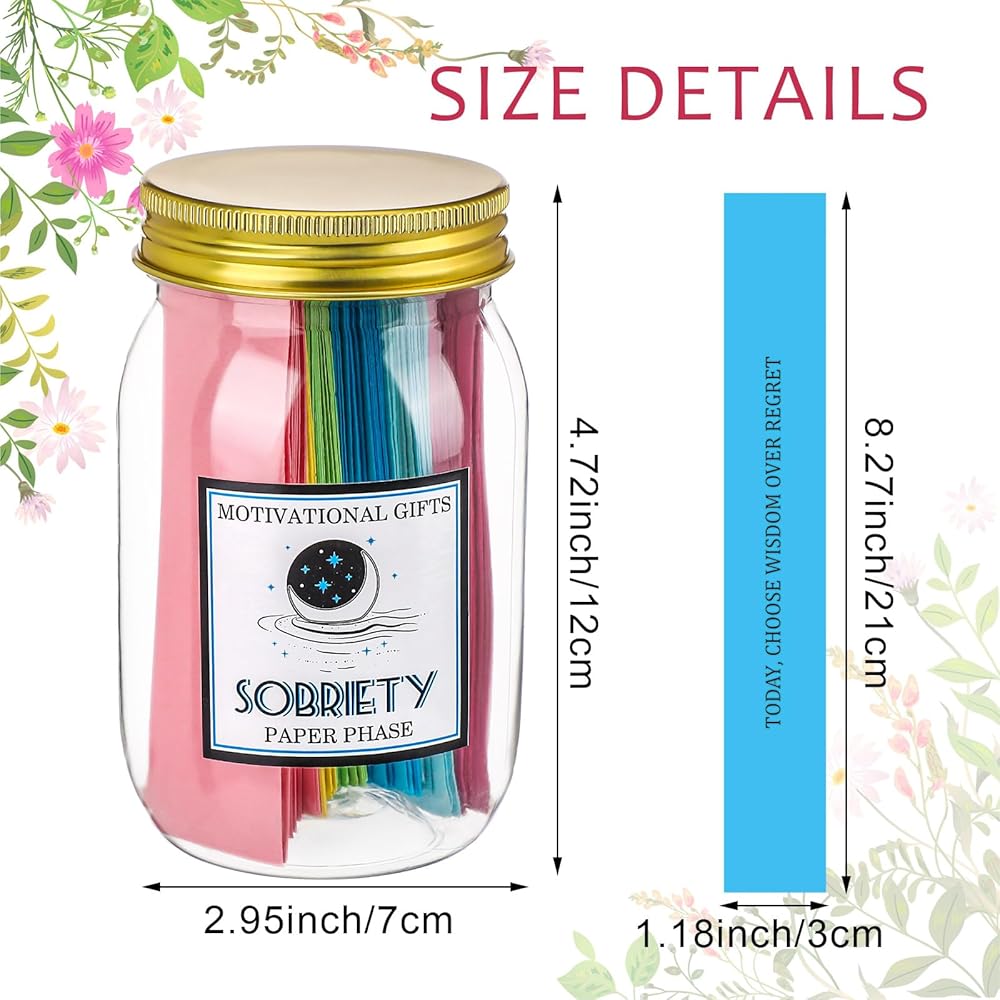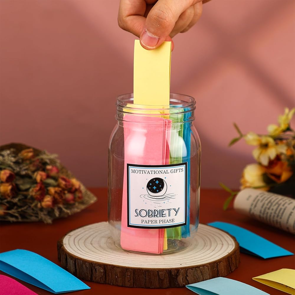 Our positive messages in a sobriety jar features a durable clear plastic jar that allows you to keep track of all your positive notes. The bright, colorful affirmation cards for sobriety are made from sturdy paper material to withstand usage over time.