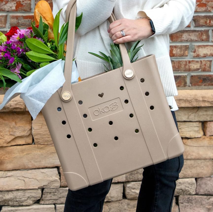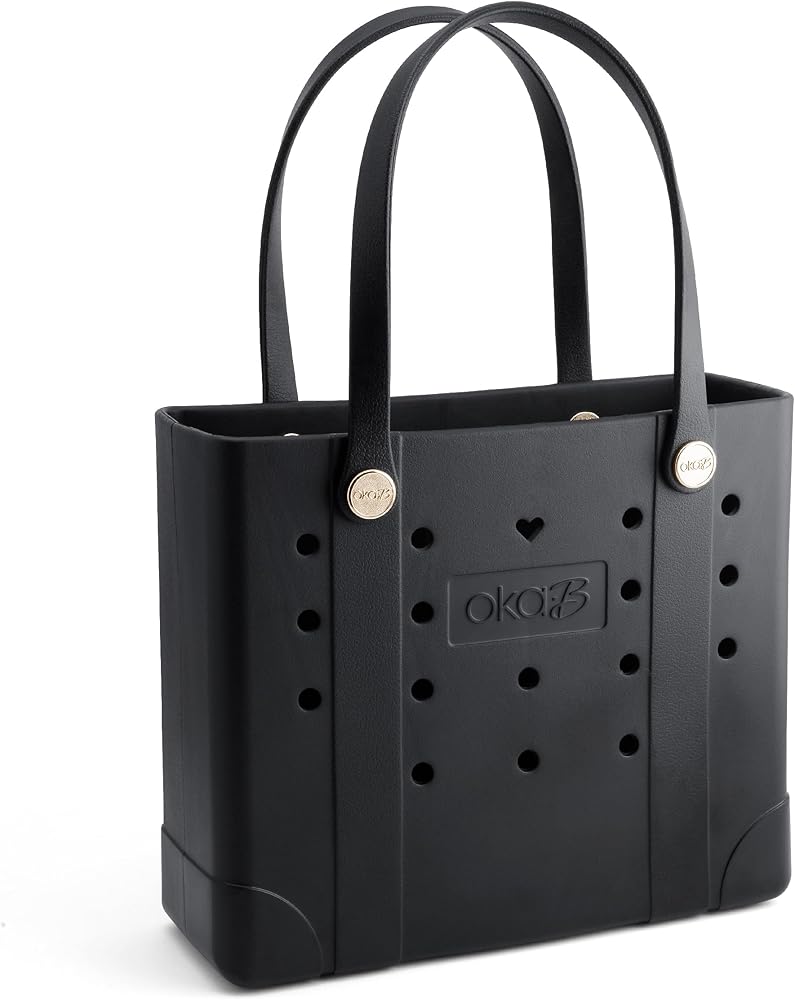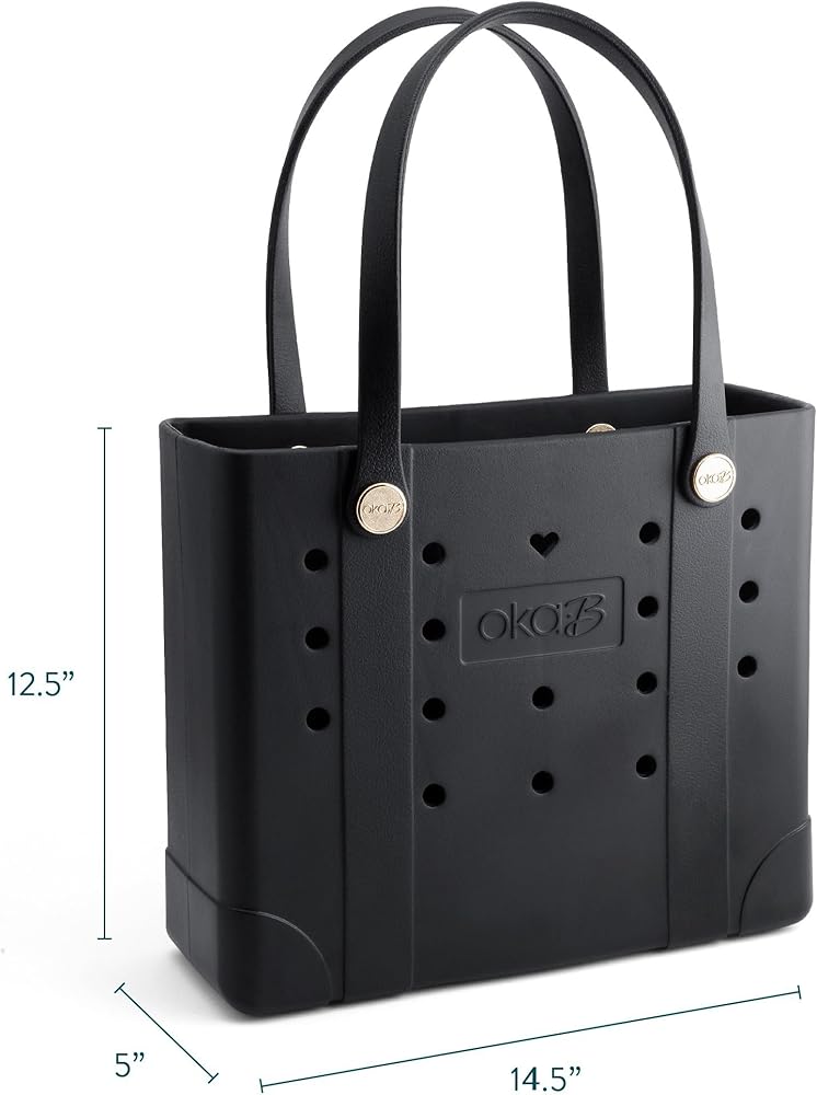 Discover the Oka-B Tori Tote, your ultimate companion for every outing. Meticulously crafted in the USA, this unisex tote blends style and function with eco-consciousness, featuring approximately 30% recycled EVA material. It's not just a bag; it's a statement of sustainable and functional living. With dimensions of 12.5" x 15.5" x 5", the Tori Tote offers ample space for your daily essentials, while the 9.5" strap drop ensures comfortable carry. Experience unparalleled durability with its soft yet robust EVA construction, ensuring your tote stands the test of time. The Tori's waterproof design and colorfast materials keep it looking pristine, whether at the beach, poolside, or on daily errands. Plus, its self-standing, flat reinforced bottom provides the convenience you desire. Each bag, adorned with metal logo buttons, reflects Oka-B's commitment to quality and love for handcrafted perfection. Embrace versatility with the Tori Tote – designed for life's every moment.